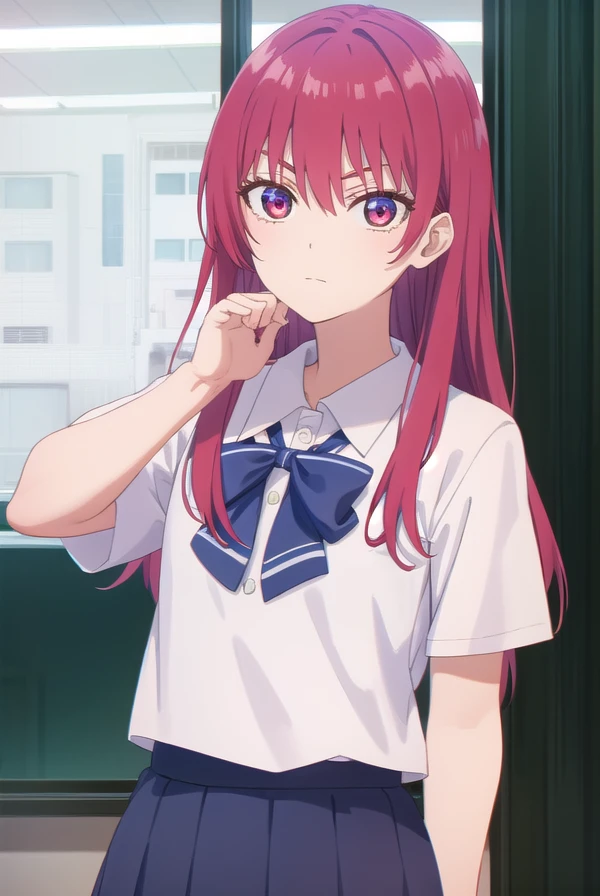 saki saki, long hair, bangs, (red eyes:1.3), red hair,
