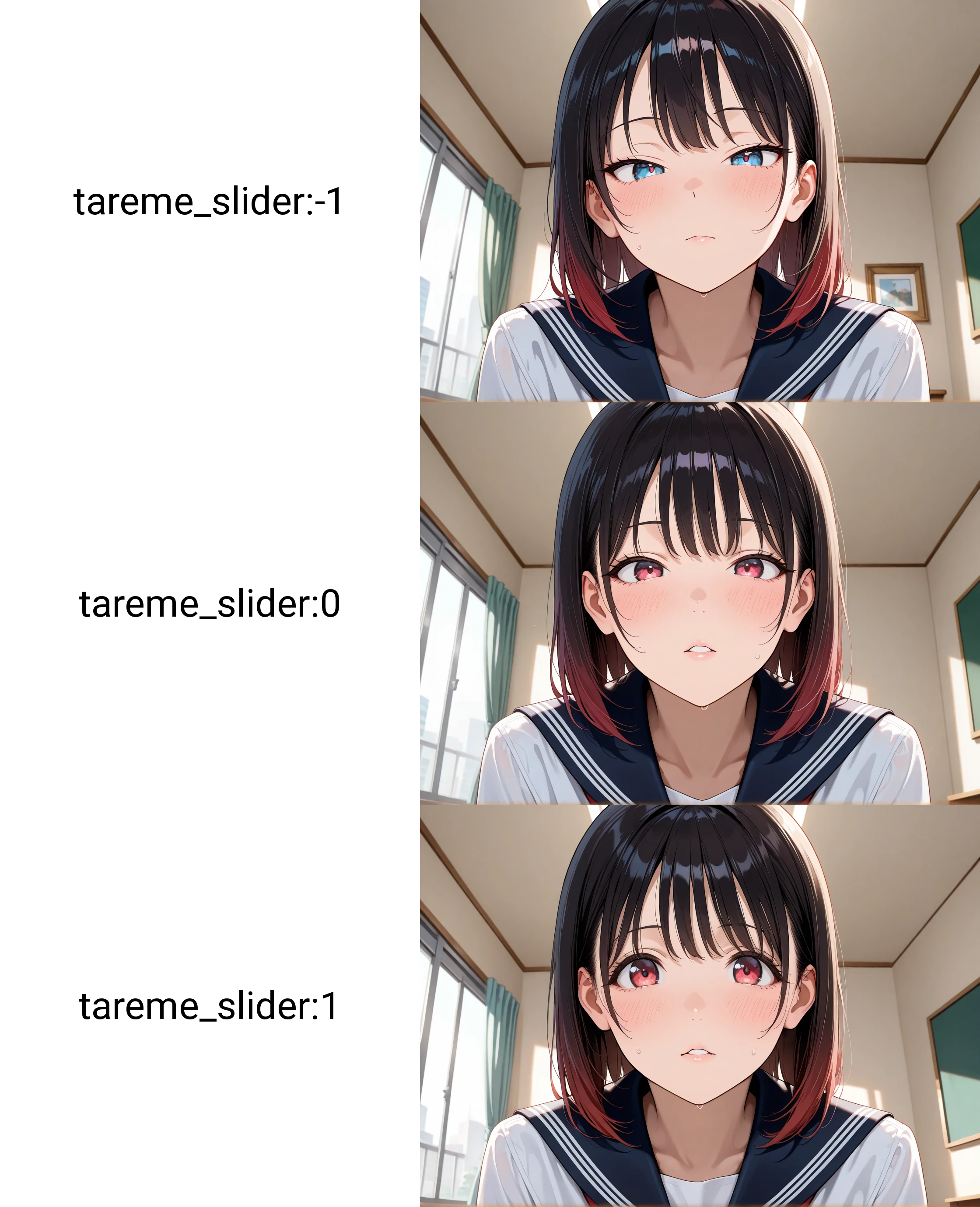 Tareme (downturned eyes) slider. Negative weight is effective like tsurime tag.