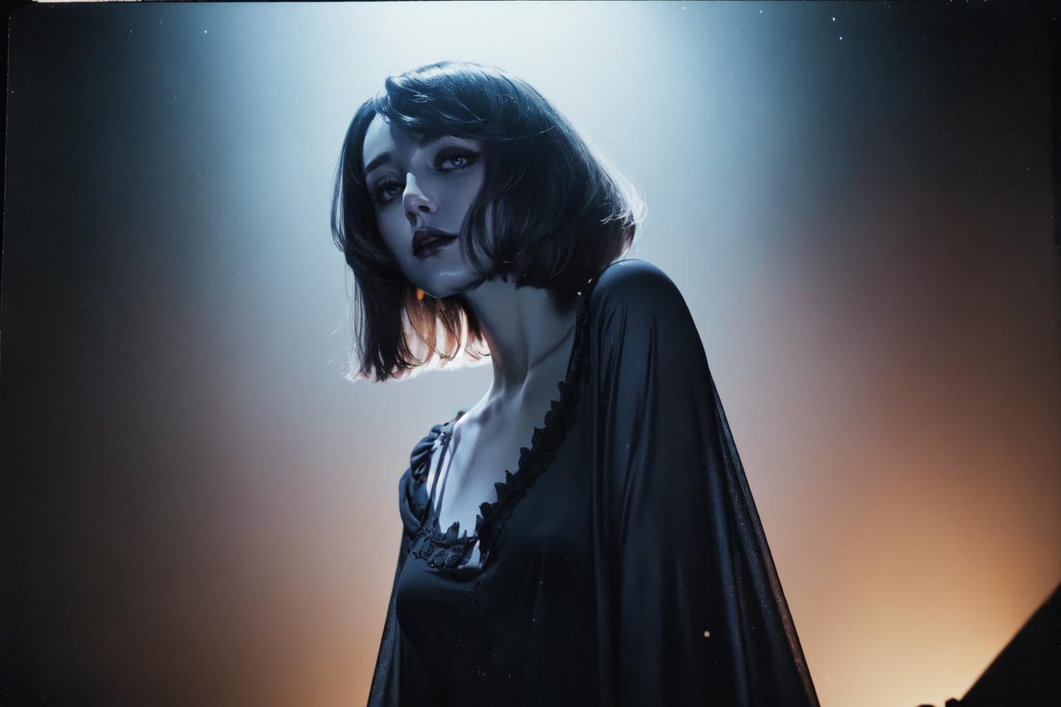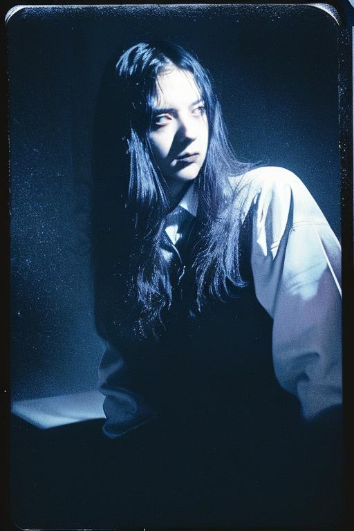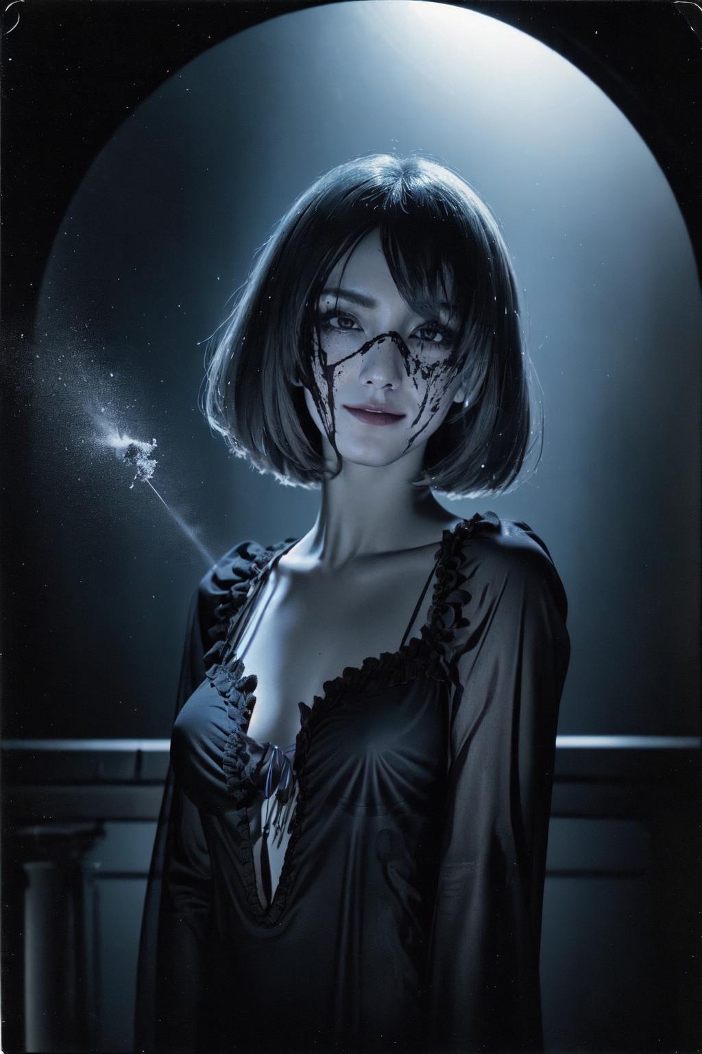 (matter:1.2), (horror:1.25), (star:1.4), directed by shane mcmellen, in the style of neon-lit pop art, photo taken with ektachrome, distorted portraiture, surreal sculpture, gothic dark and moody tones, softbox lighting, instax film, a stunning photograph of beautiful woman, Color film photograph, FilmG, 8k, raw photo, (film grain:1.0), (floating dust particle:1.2), award winning photo, 24mm, on focus, spotlight, rim light, in the dark, dimly lit, low key, deep shadow,fogs,