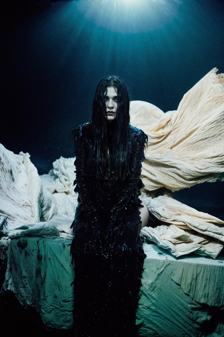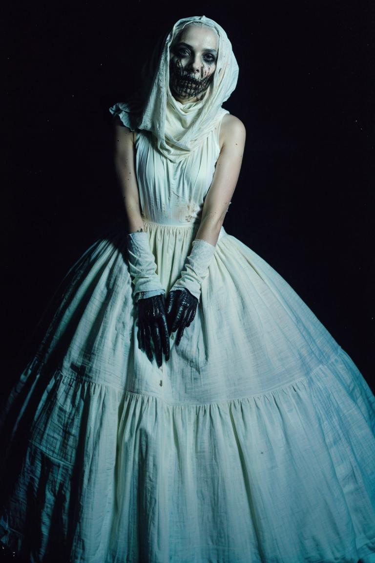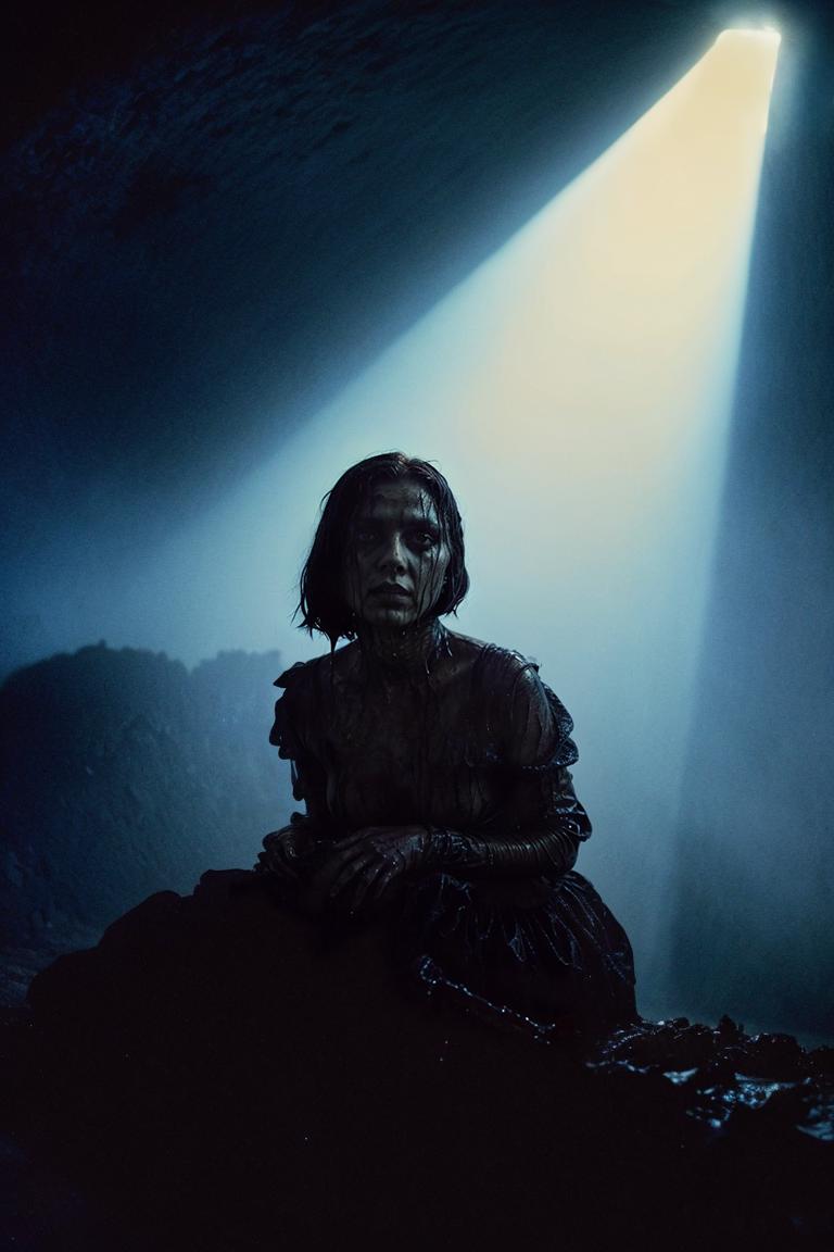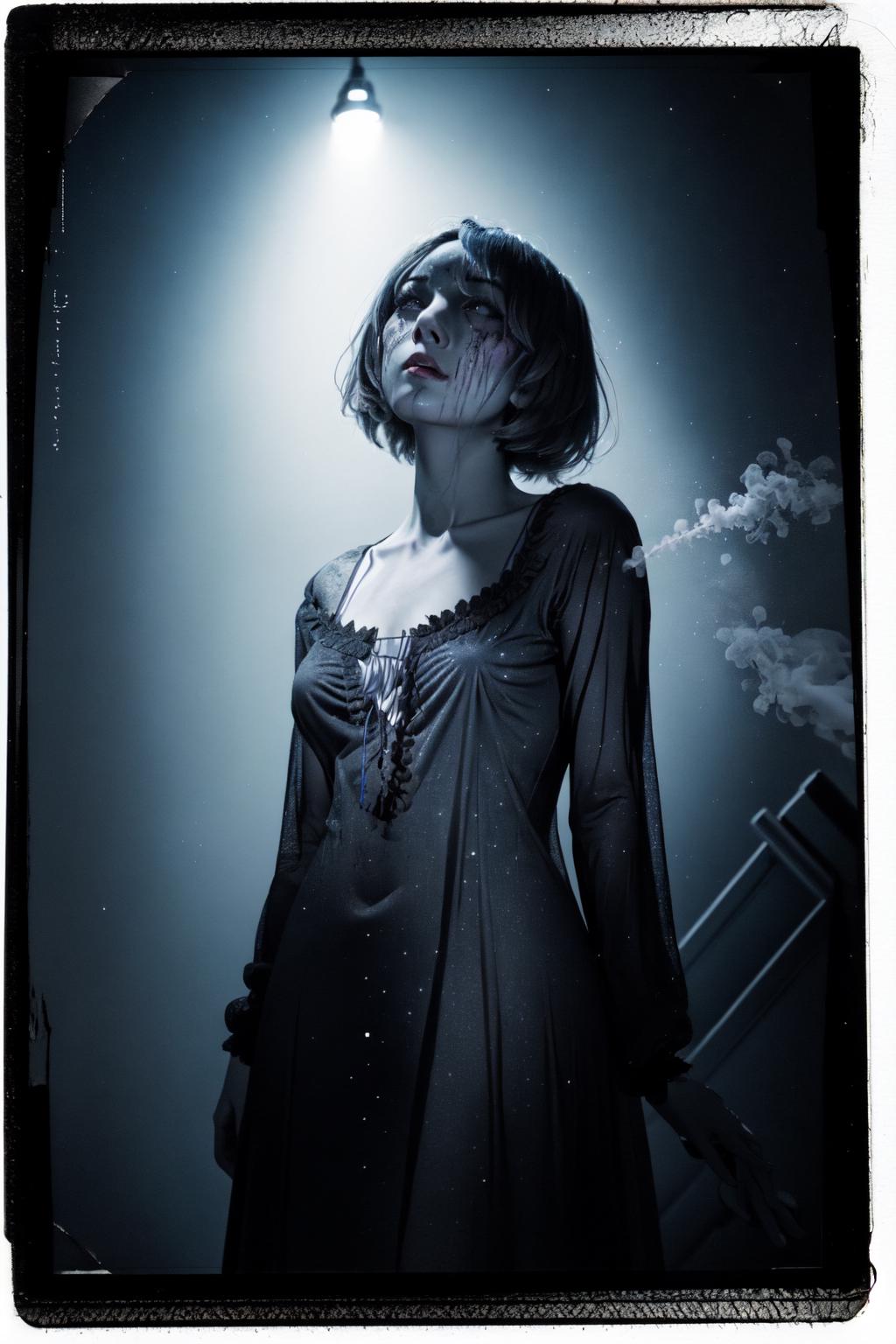 (matter:1.2), (horror:1.25), (star:1.4), directed by shane mcmellen, in the style of neon-lit pop art, photo taken with ektachrome, distorted portraiture, surreal sculpture, gothic dark and moody tones, softbox lighting, instax film, a stunning photograph of beautiful woman, Color film photograph, FilmG, 8k, raw photo, (film grain:1.0), (floating dust particle:1.2), award winning photo, 24mm, on focus, spotlight, rim light, in the dark, dimly lit, low key, deep shadow,fogs,