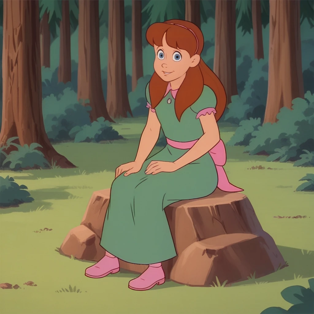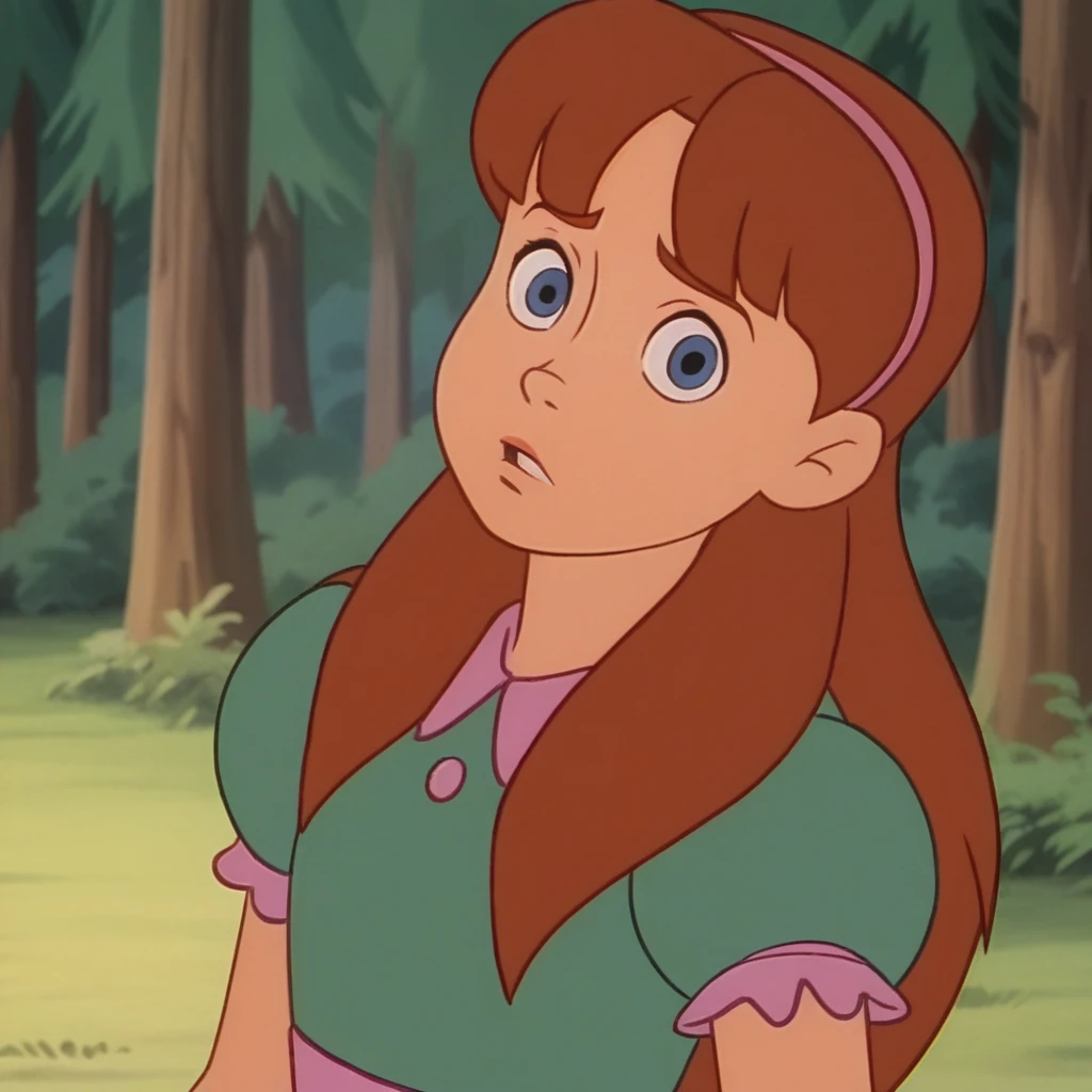 Rebecca, 1girl, solo, brown hair, long hair, blue eyes,