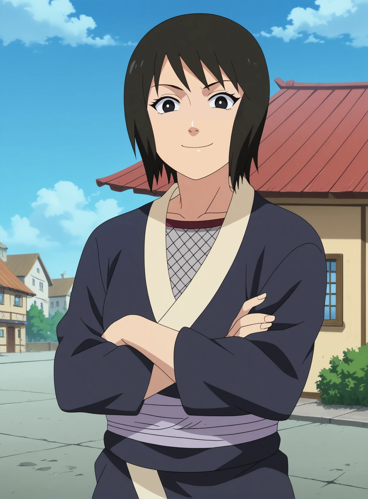 shizune,1girl,solo,mature,japanese clothes,short hair,fishnets,ninja,kimono,looking at viewer,smile