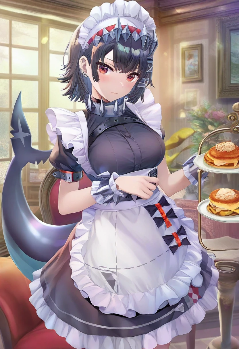 猫又 nekomiya mana,dark skin,black hair,red eyes,multiple tails,neck bell