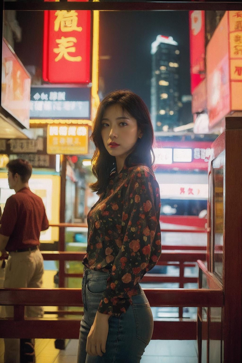 正向词:Best Quality,Masterpiece,Ultra High Resolution,(Realisticity:1.4),Original Photo,Cinematic Lighting,1Girl,HongKong style,HongKong,cowboy,sunglasses,