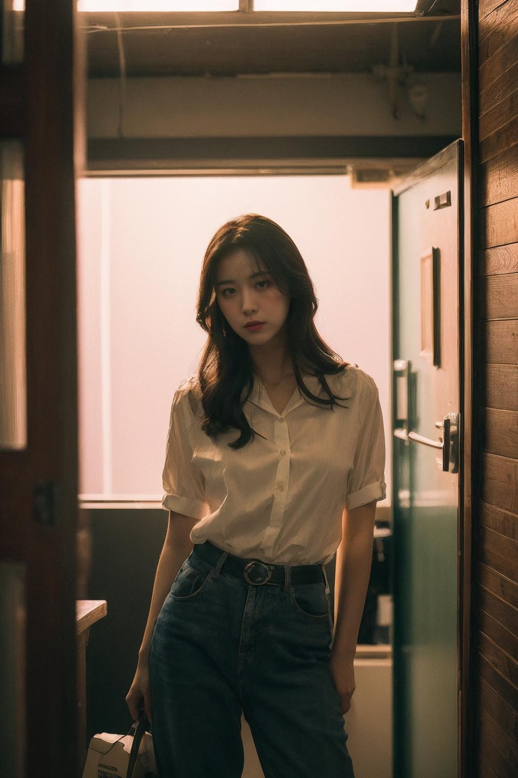 Positive words: Best Quality, Masterpiece, Ultra High Resolution, (Realisticity: 1.4), Original Photo, Cinematic Lighting, 1Girl, HongKong style, HongKong, cowboy, sunglasses,