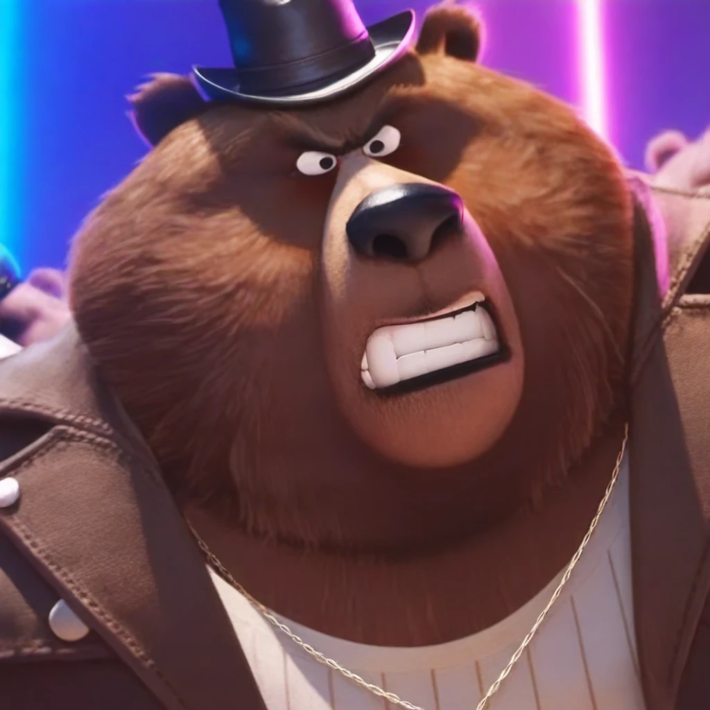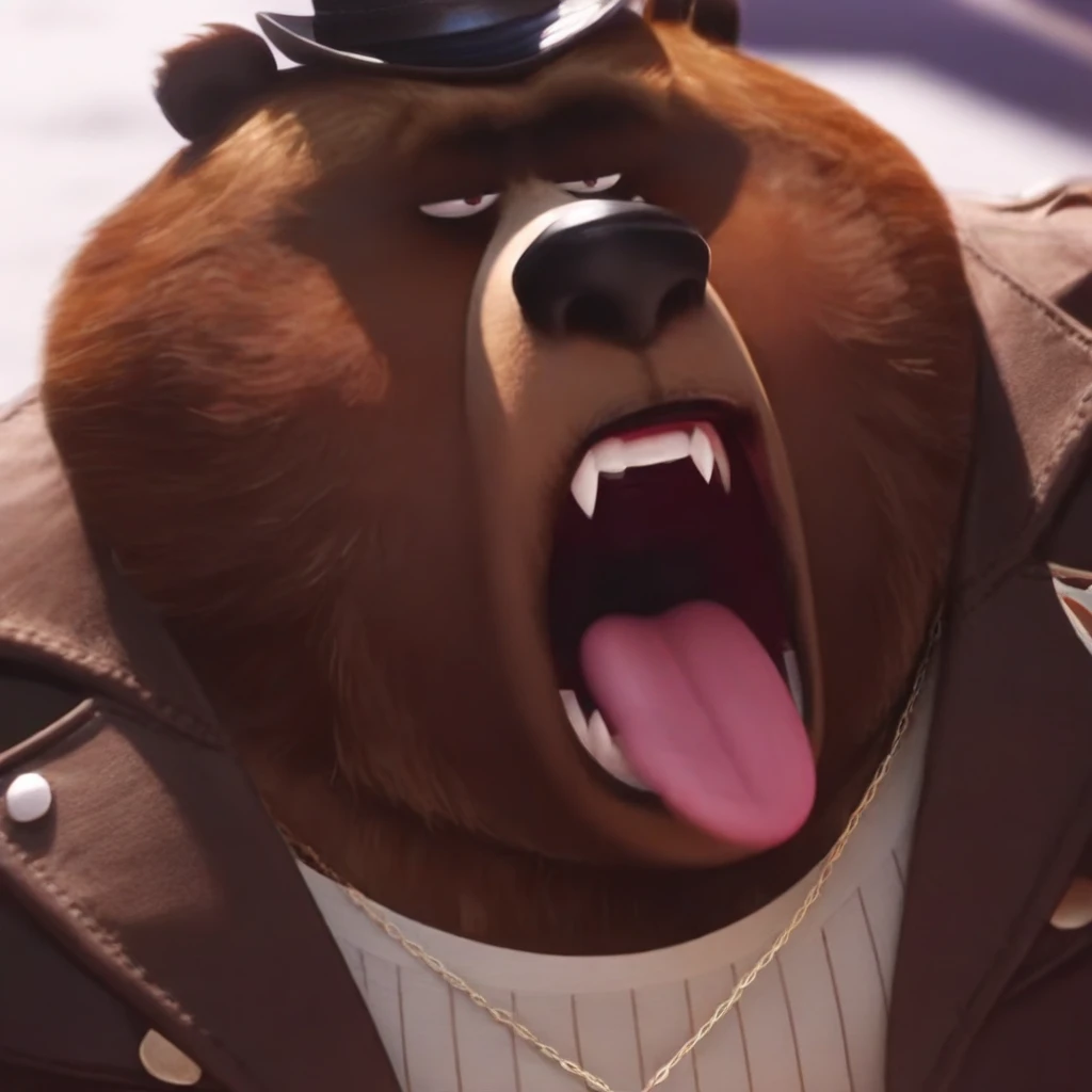 You can add "Brown Fur, Brown Jacket, white shirt, gold chain, hat" for better results.