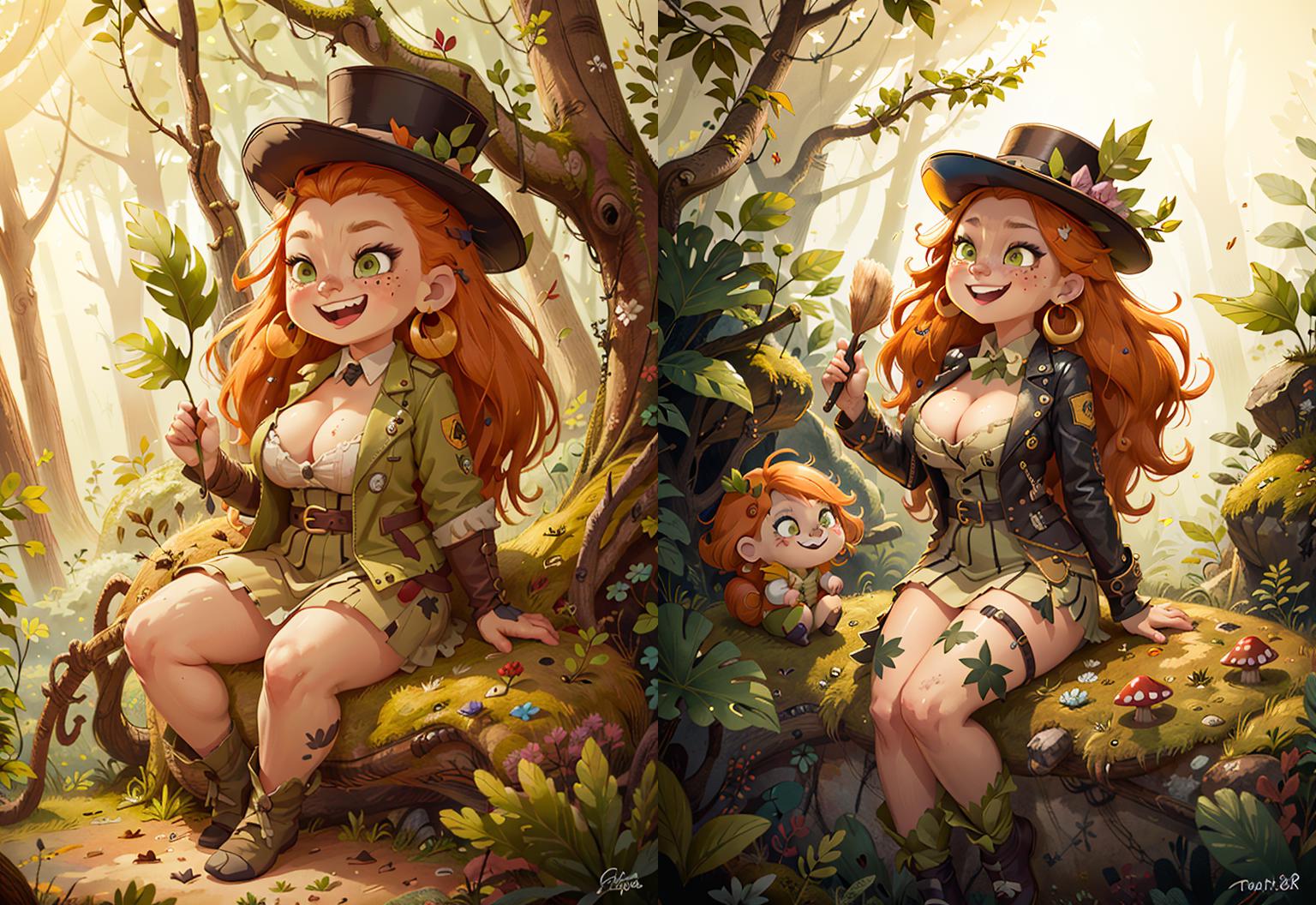 freckles, Short, [chibi], round face, big headed, (leaves in hair:1.2),