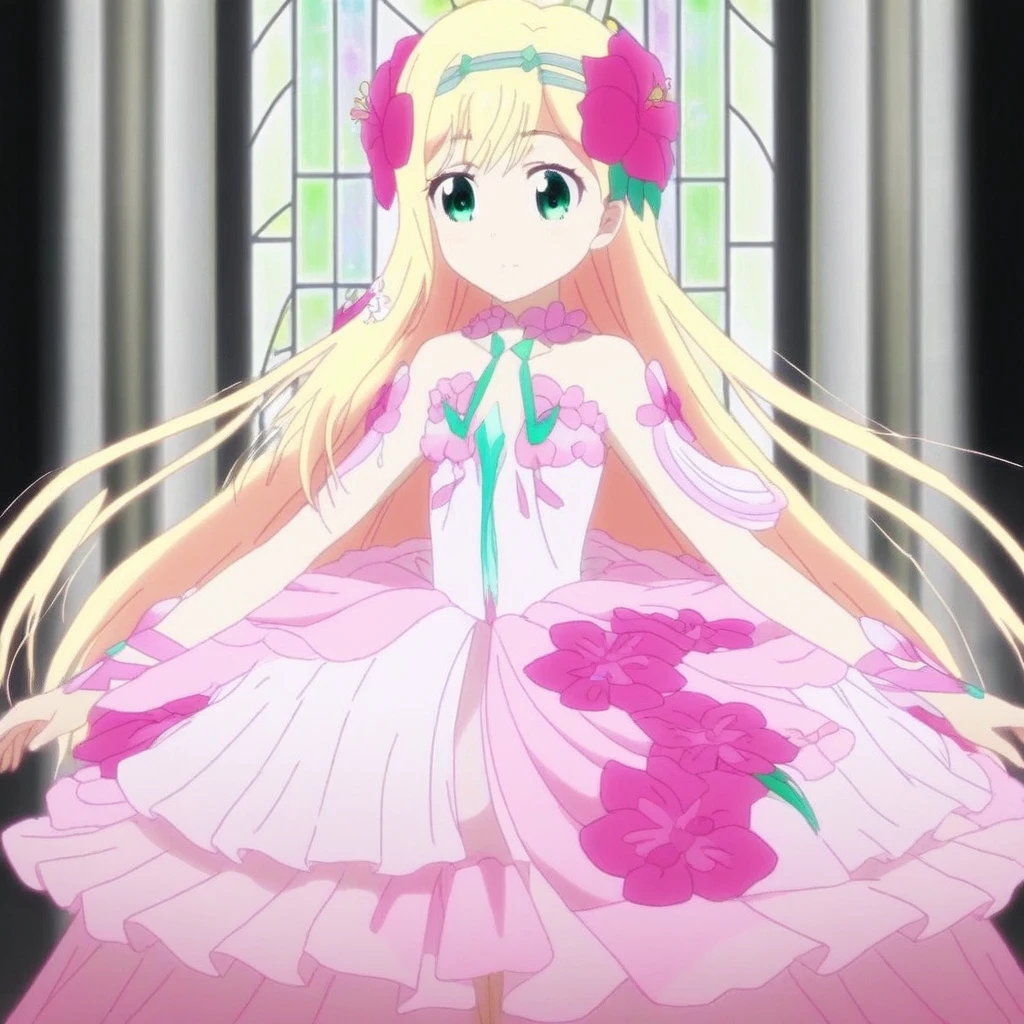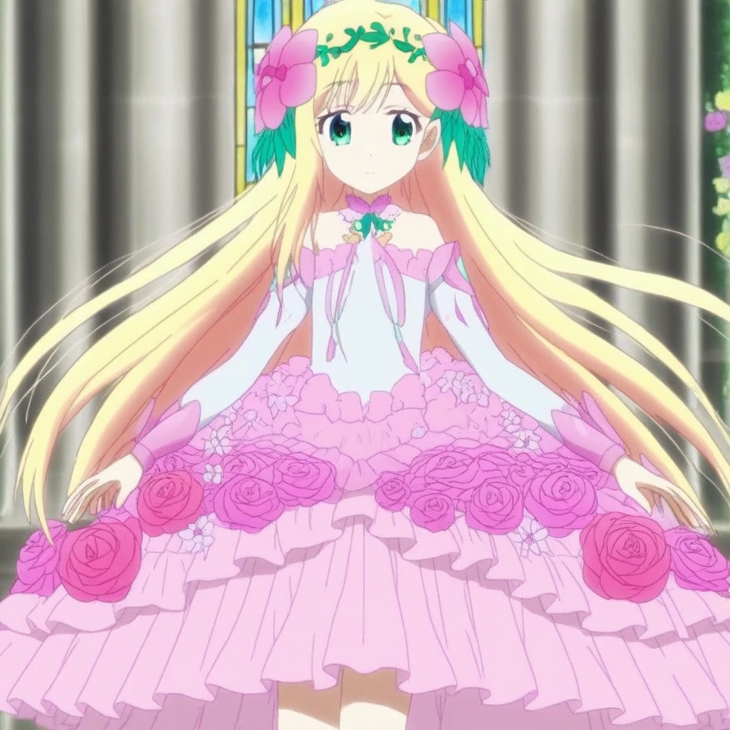 for the pink dress, use "dress, hair ornament & flowers"