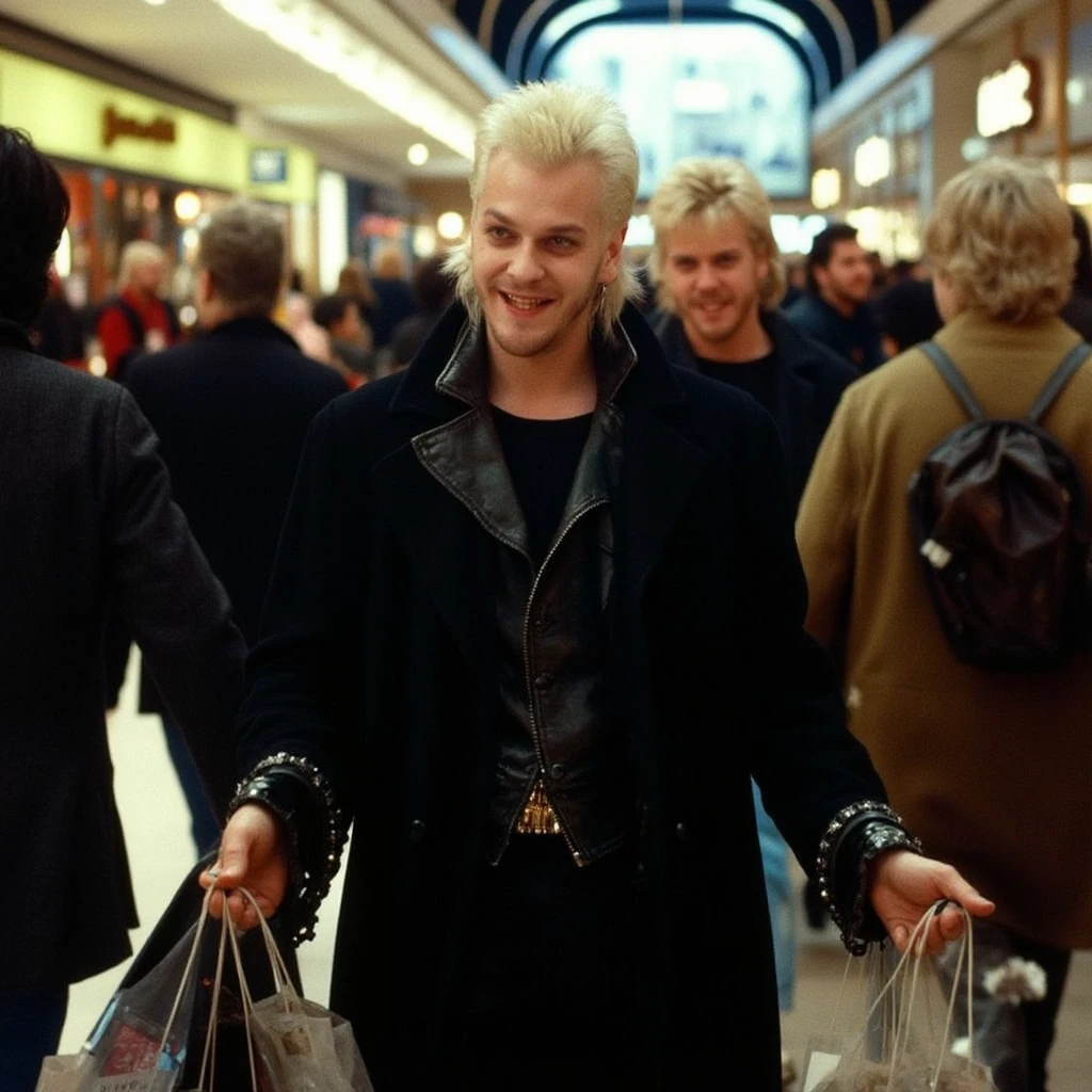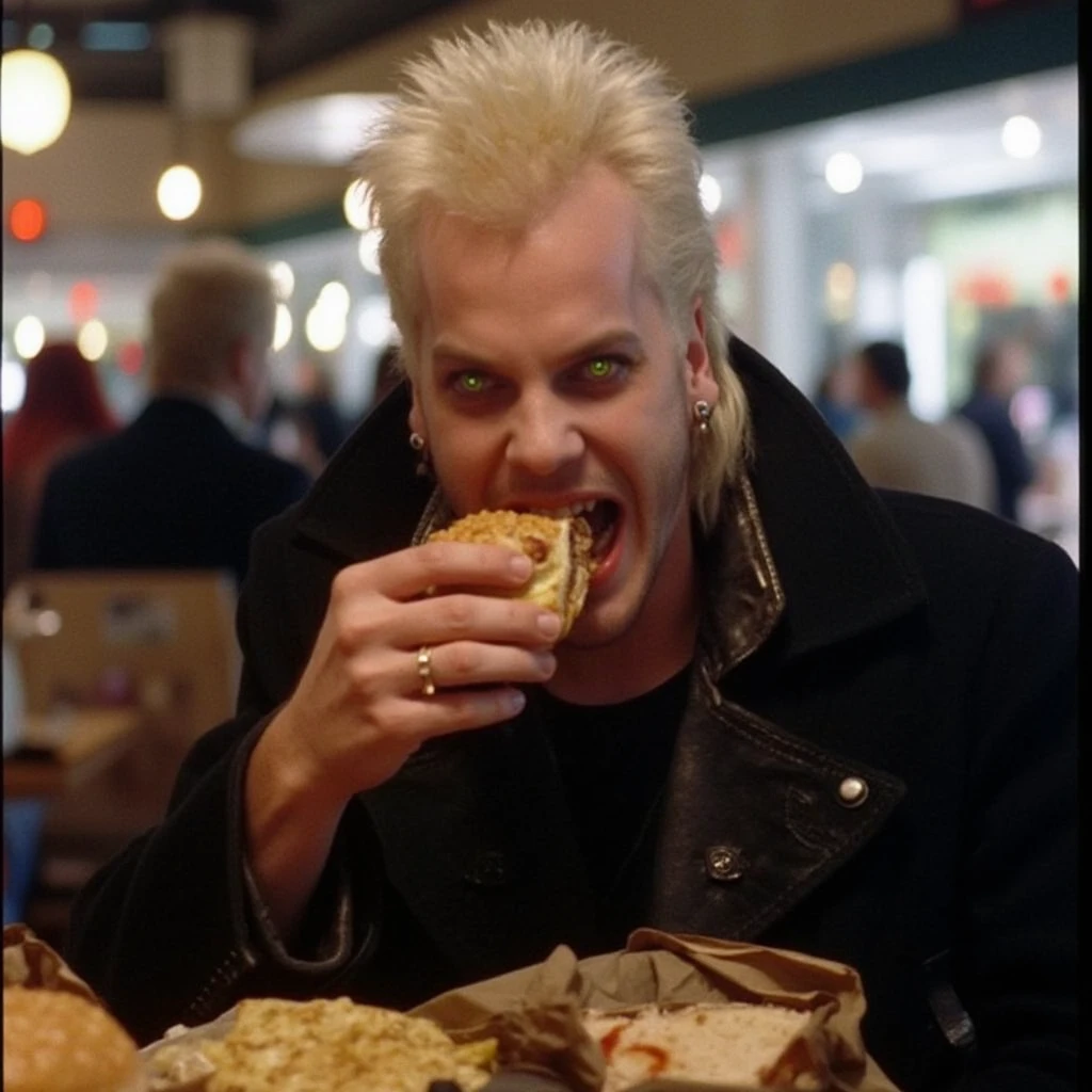 David the Vampire, played by Kieffer Sutherland in his younger years. From the movie " The Lost Boys " and now here haunting the computers in full Flux glory haha. A memorable unforgettable character from a cult classic! Thou shalt not die! Thou shalt not kill! Thou shalt not cry! Thou shalt not quit civitai!