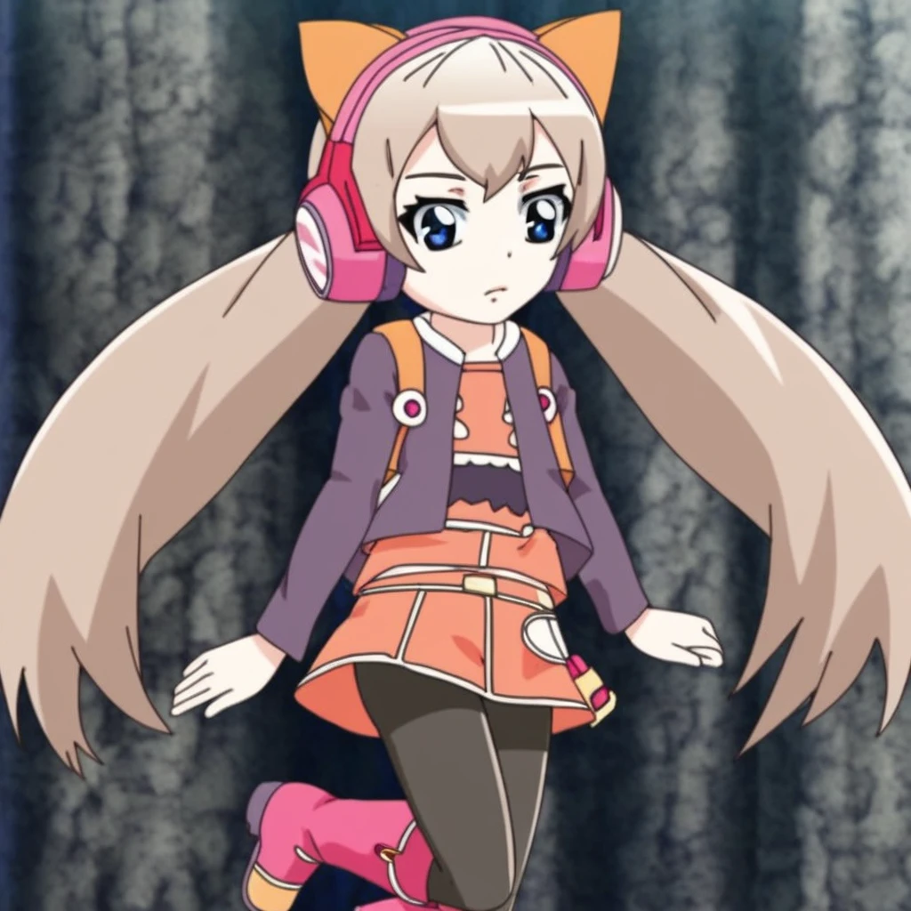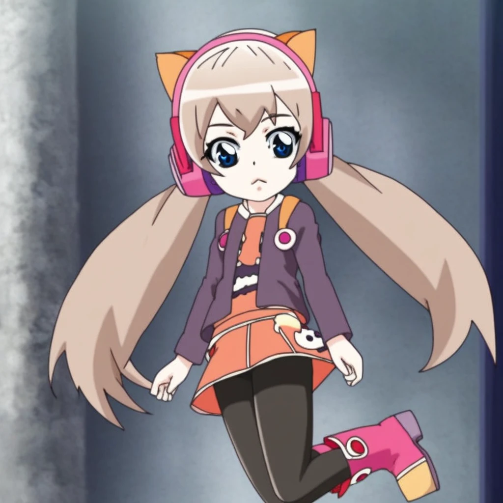 long hair, blue eyes, skirt, brown hair, animal ears, twintails, jacket, pantyhose, boots, cat ears, black pantyhose, headphones