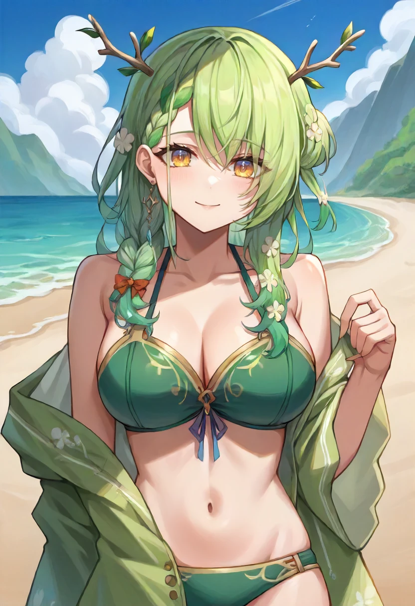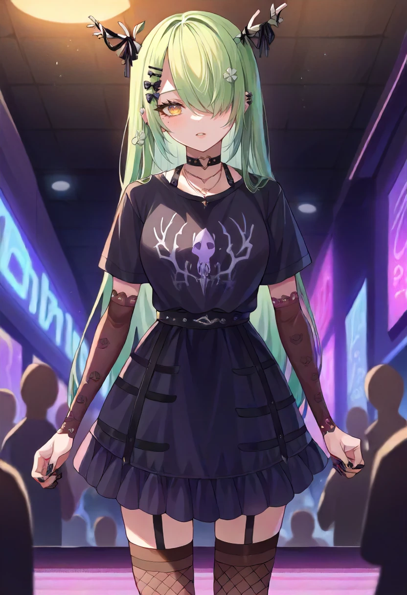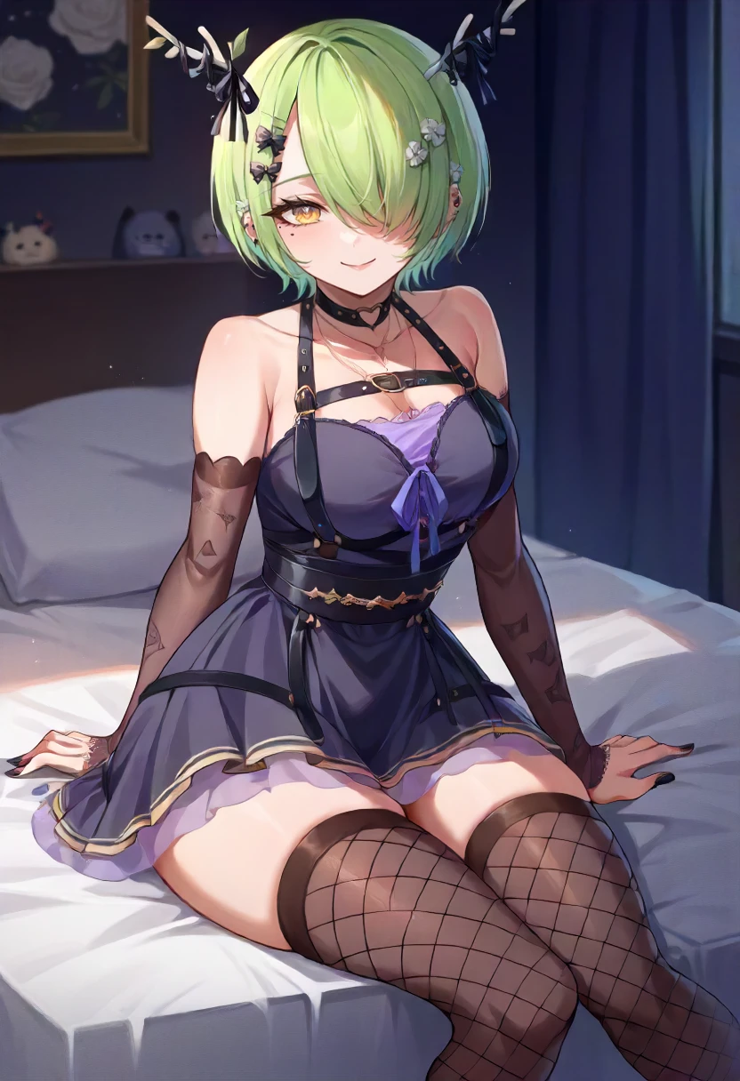 🌿 Features 4 outfits: base, casual, goth, and new year. Copy the tags on the right to generate each one. Can include or leave out accessories like glasses/cardigan/apron and can switch hairstyles, sometimes with some help from negatives. You can also generate her in different clothes with "fauna, antlers" and your hairstyle of choice, for this you should slightly lower the lora's weight (around 0.8). If you like it you can add terms like "milf" or "large breasts" to your prompt.