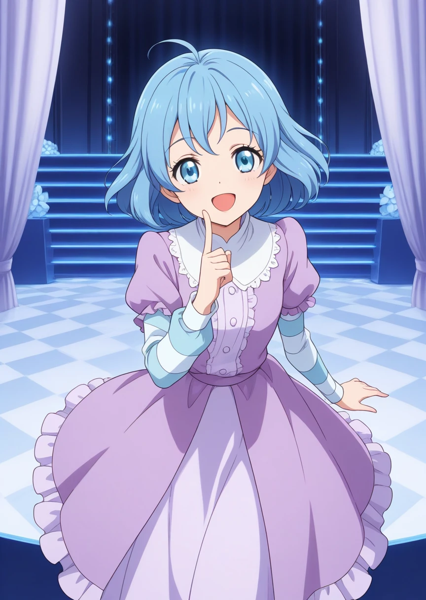 prompts: humanlarimar, blue hair, blue eyes, short hair