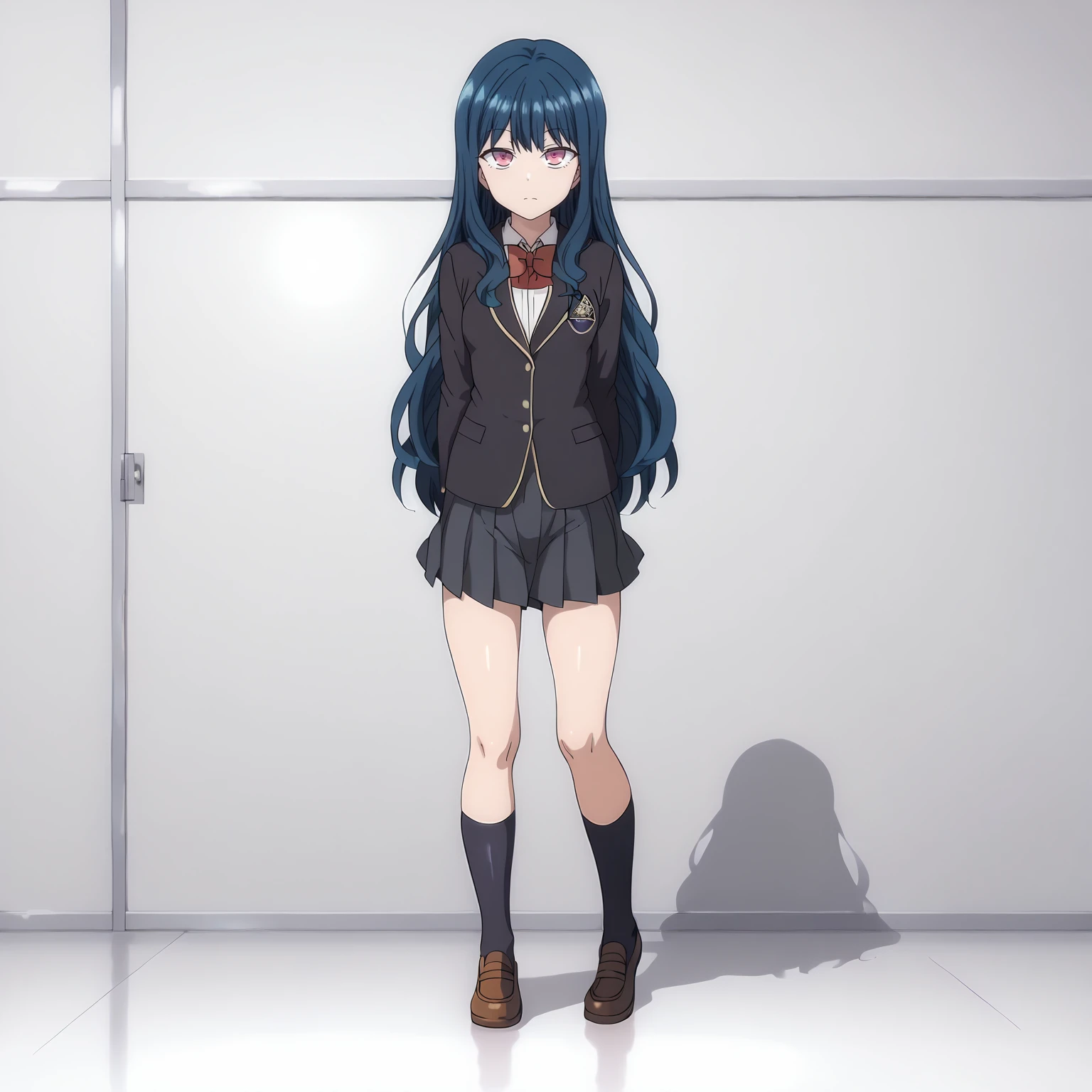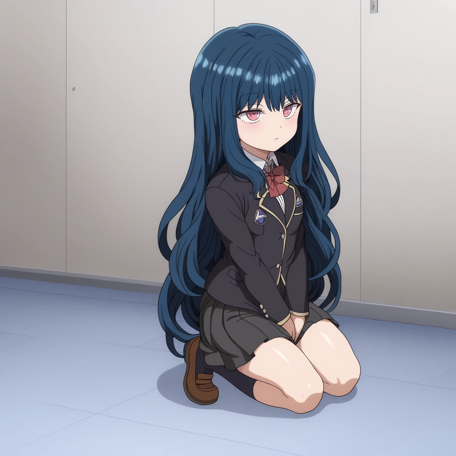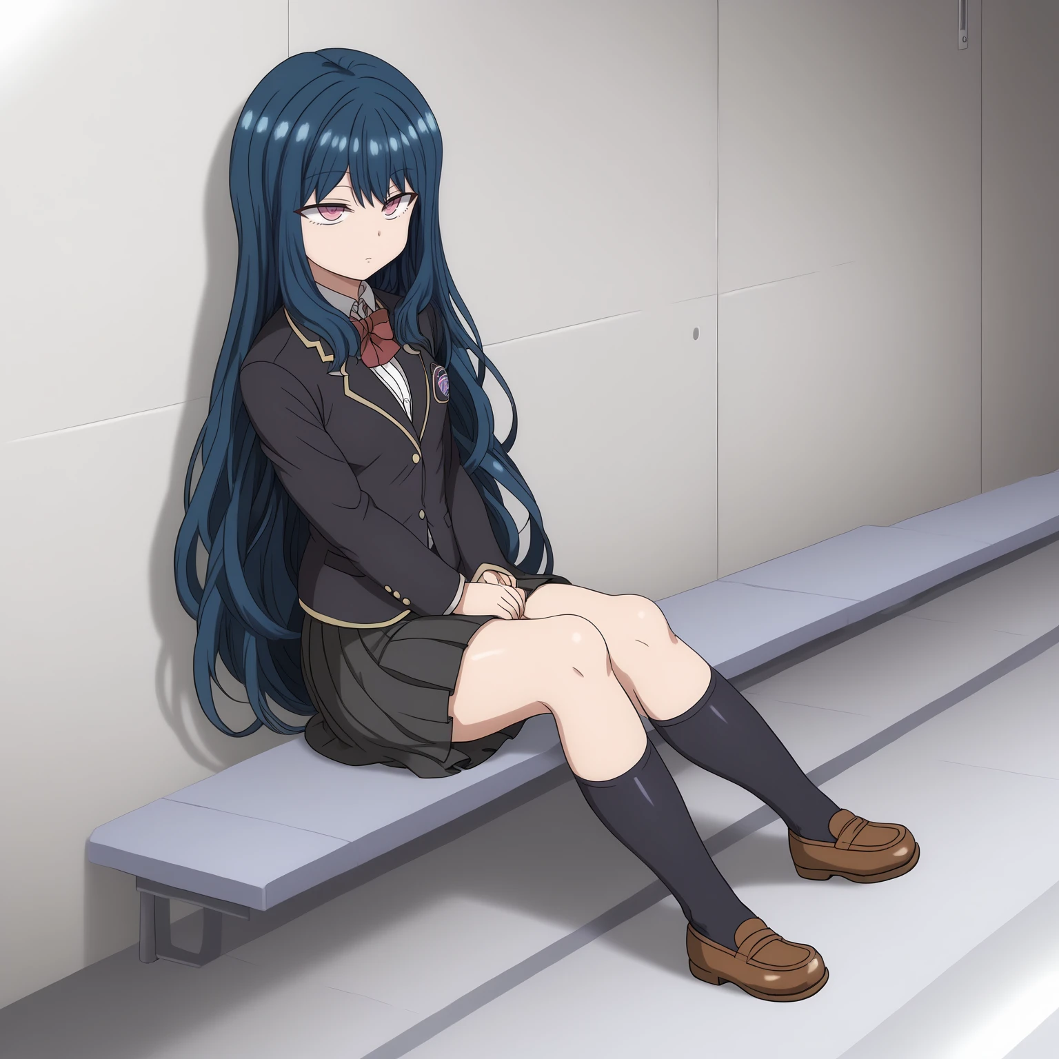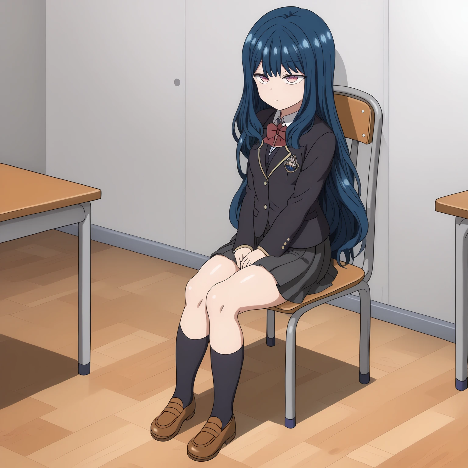 school_uniform,black blazer,red bowtie, pleated_skirt,black skirt, black socks,