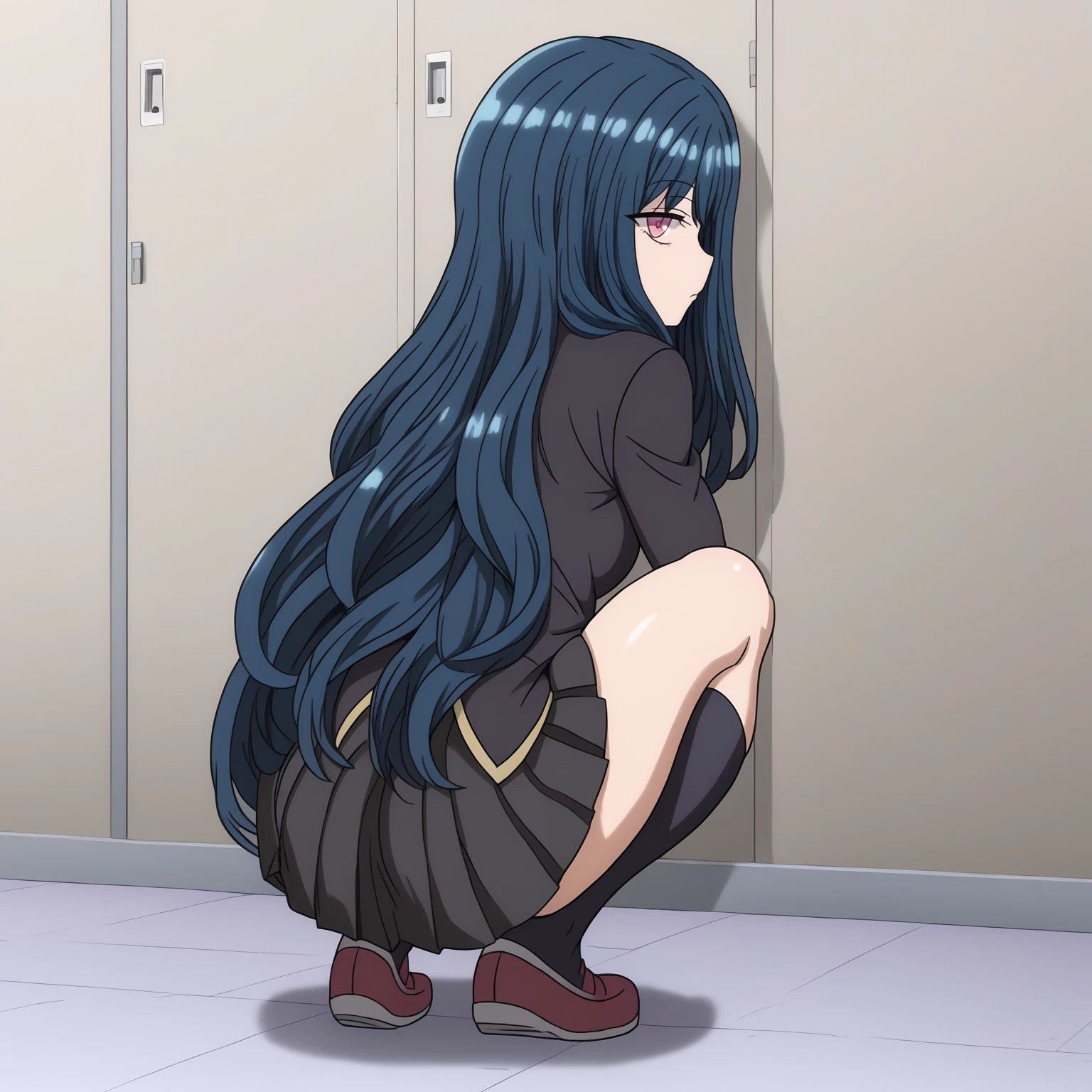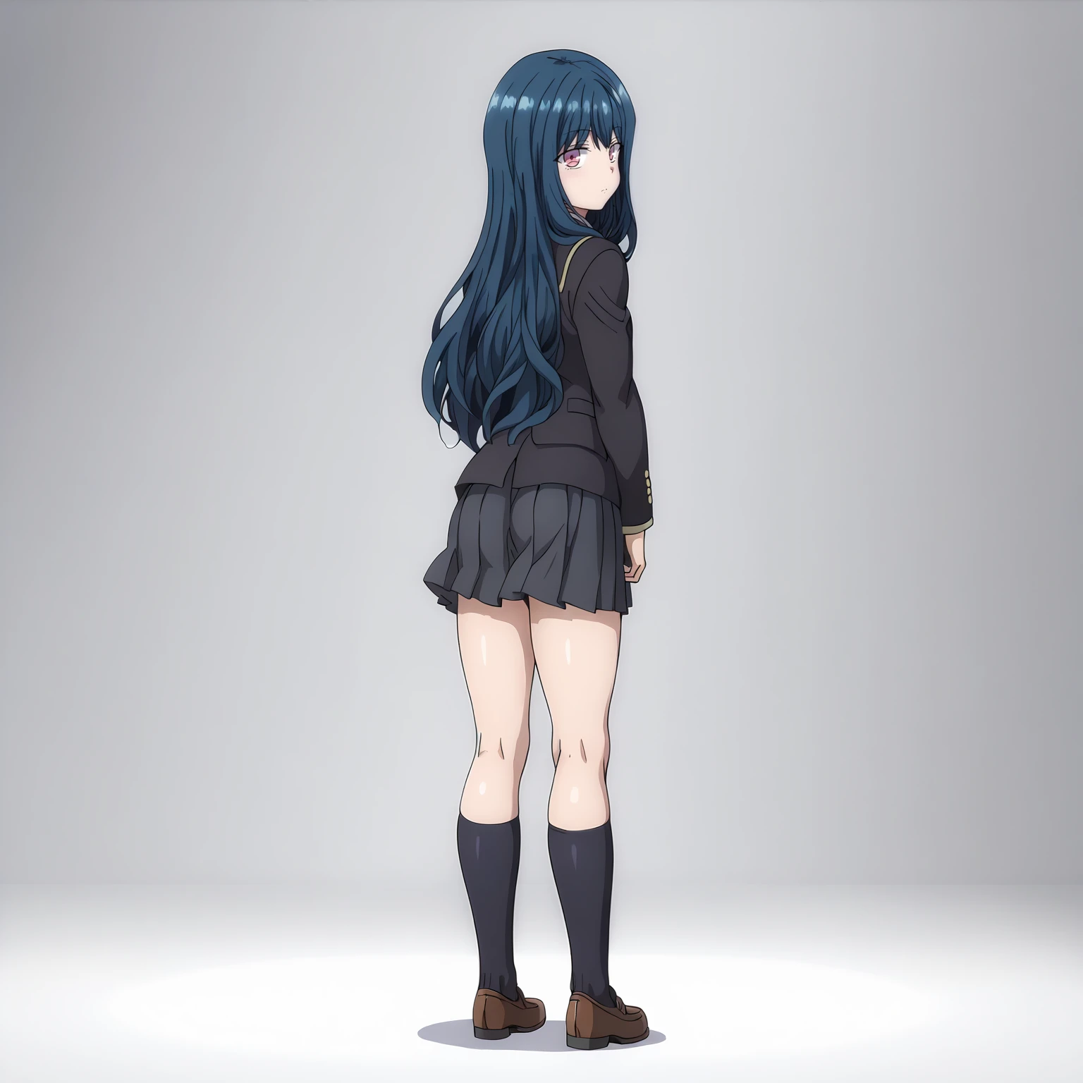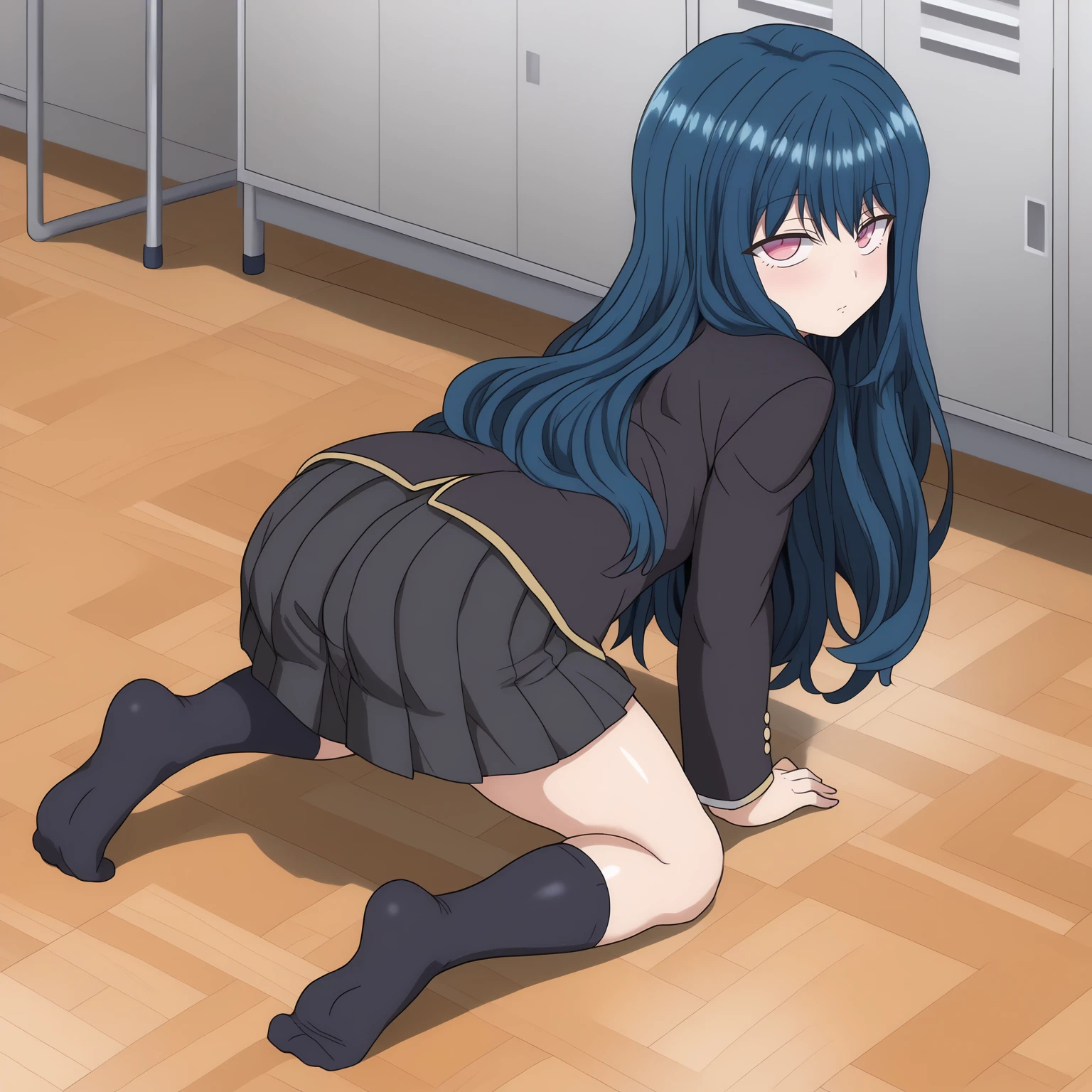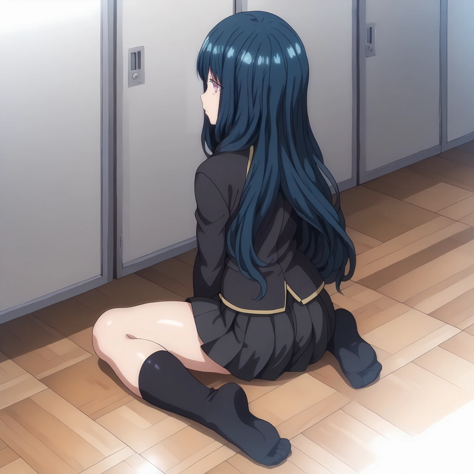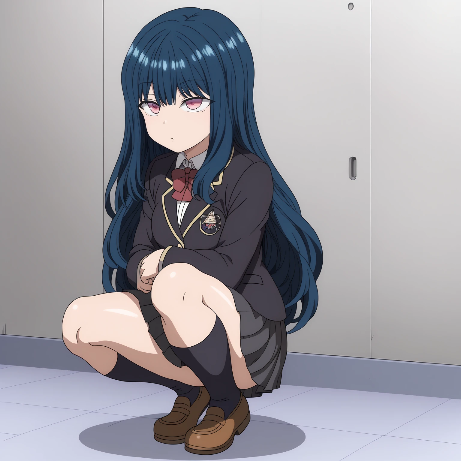 school_uniform,black blazer,red bowtie, pleated_skirt,black skirt, black socks,