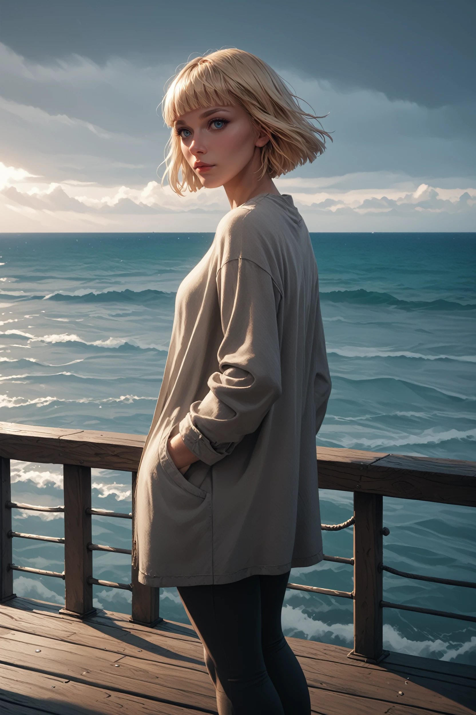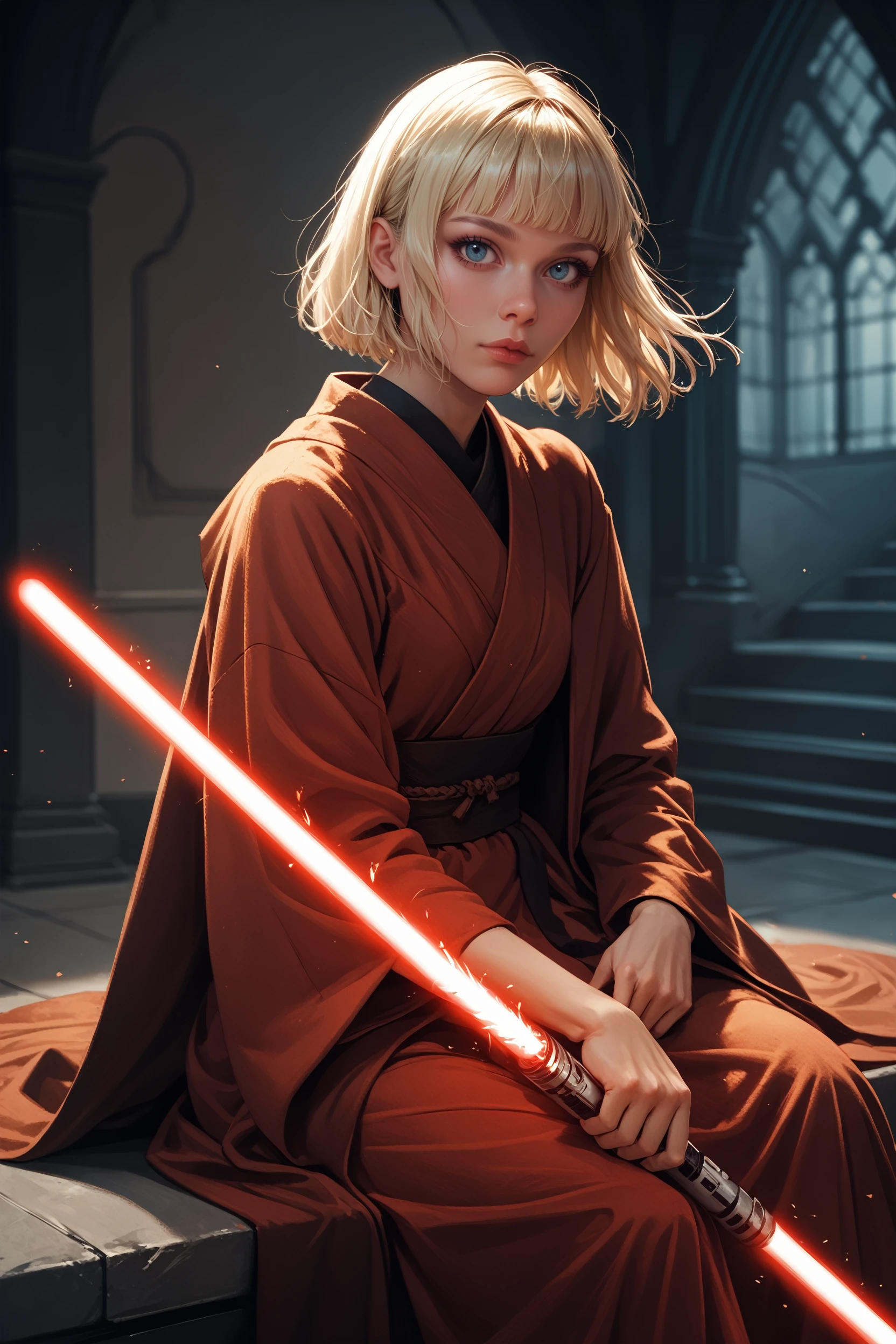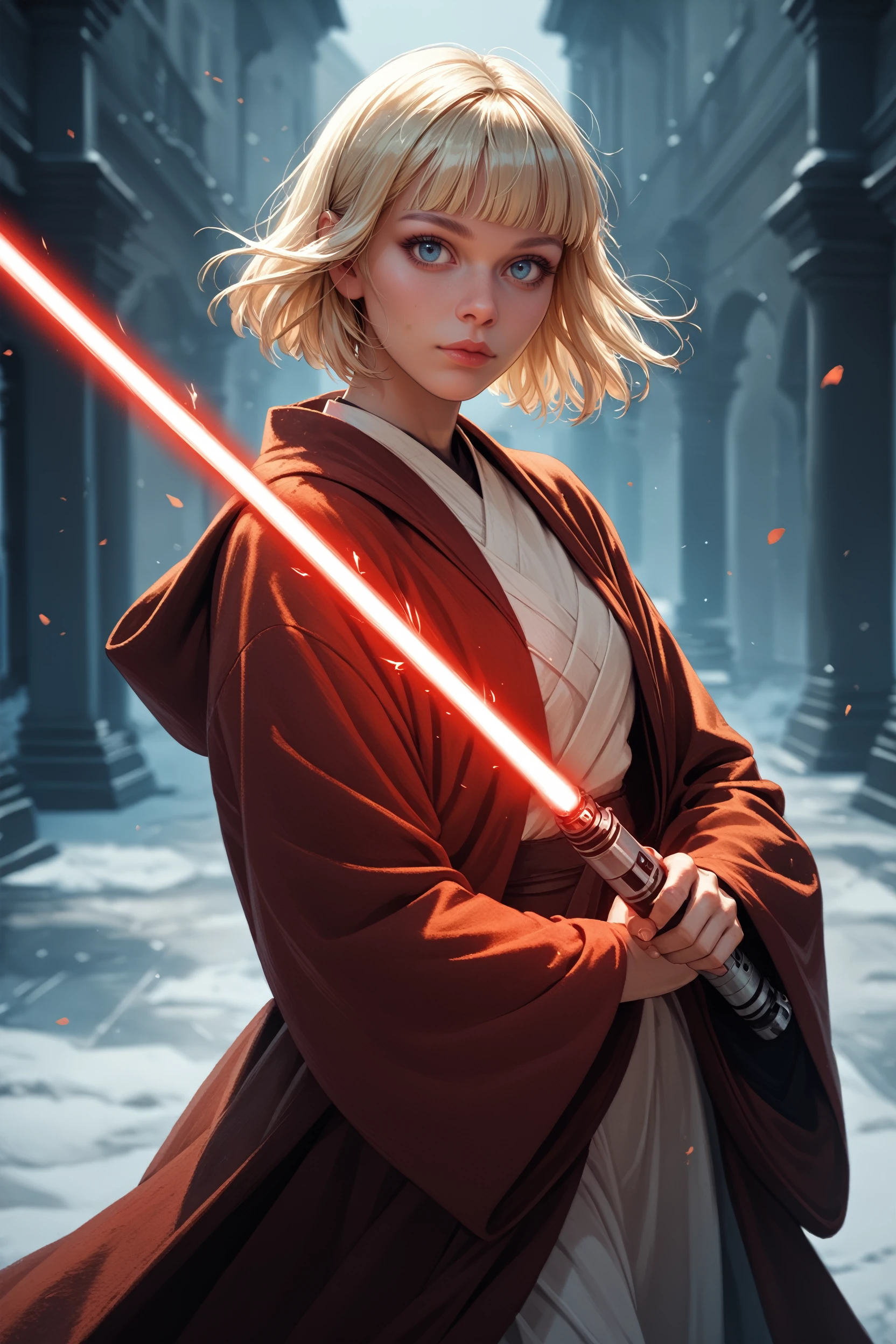 SWShinHati, 1girl, blonde hair, short hair, blunt bangs, blue eyes