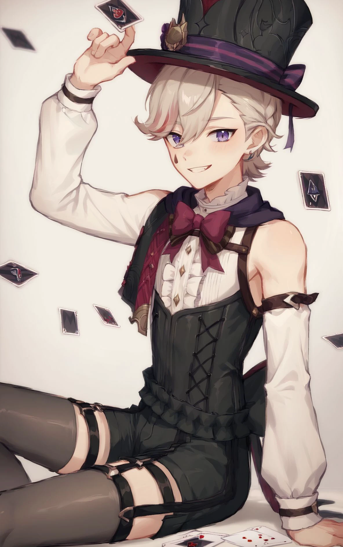 This is a character LoRA for Lyney from Genshin Impact, trained for Pony Diffusion V6 XL.