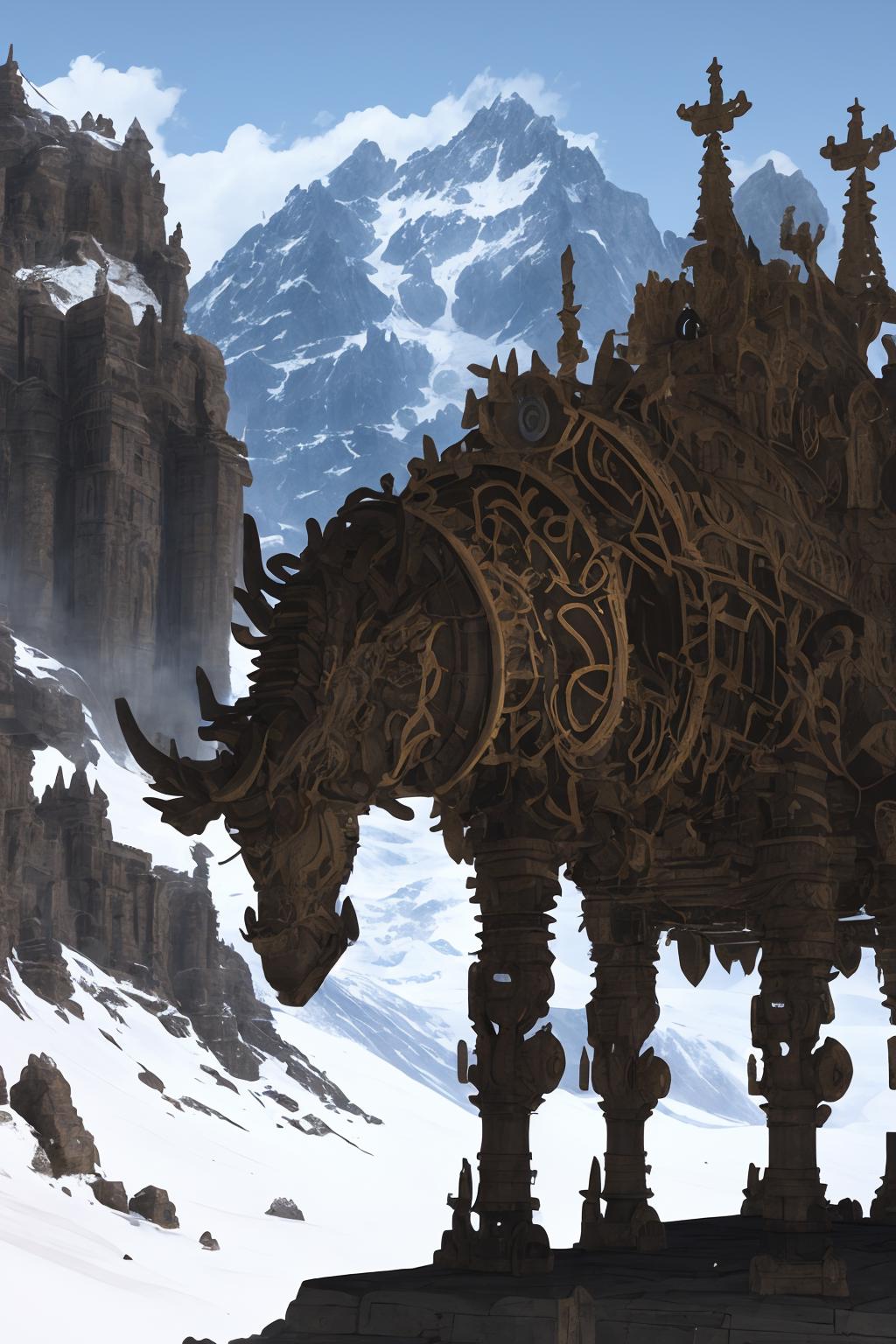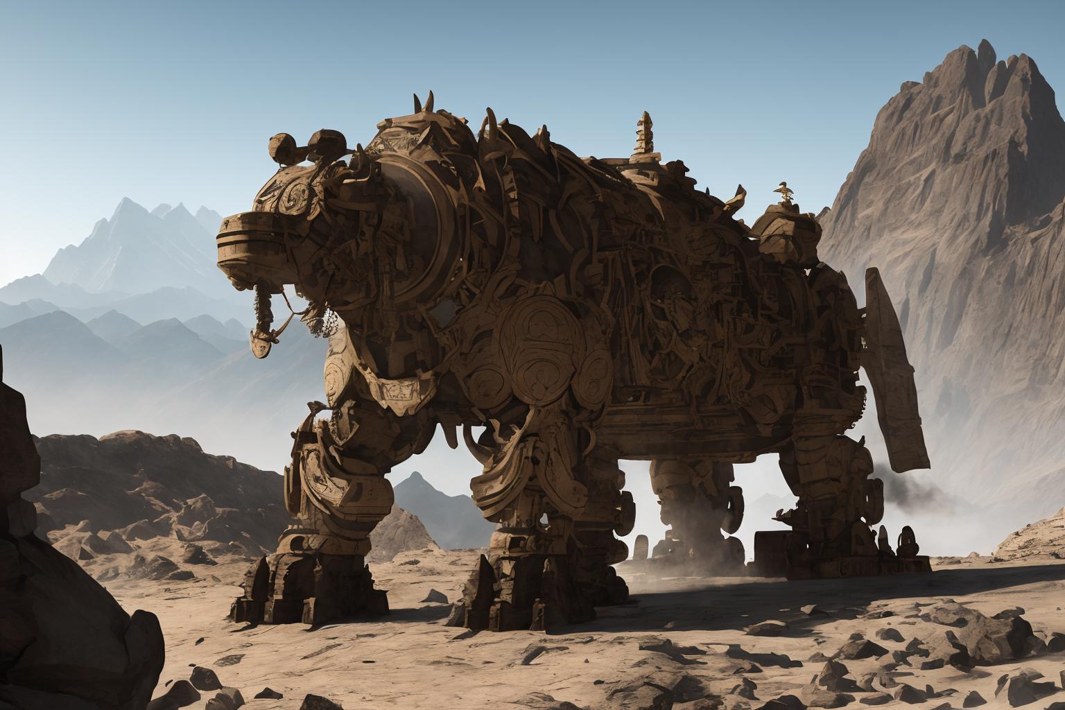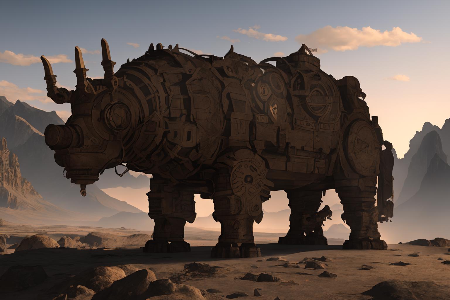 This model is based on the Divine Beasts, enormous robotic animals from The Legend of Zelda: Breath of the Wild. Four Divine Beasts appear in the game, resembling an elephant, a camel, a bird, and a lizard. With this LoRA you can generate your own menagerie of Beasts.