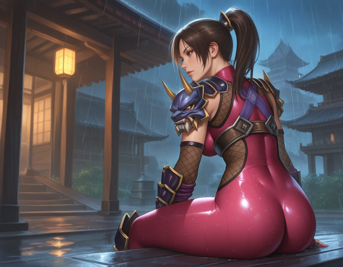 Starting prompt: 1girl, taki \(soulcalibur\), ponytail, brown eyes, ?????????????, armor, ninja, ????????, gloves