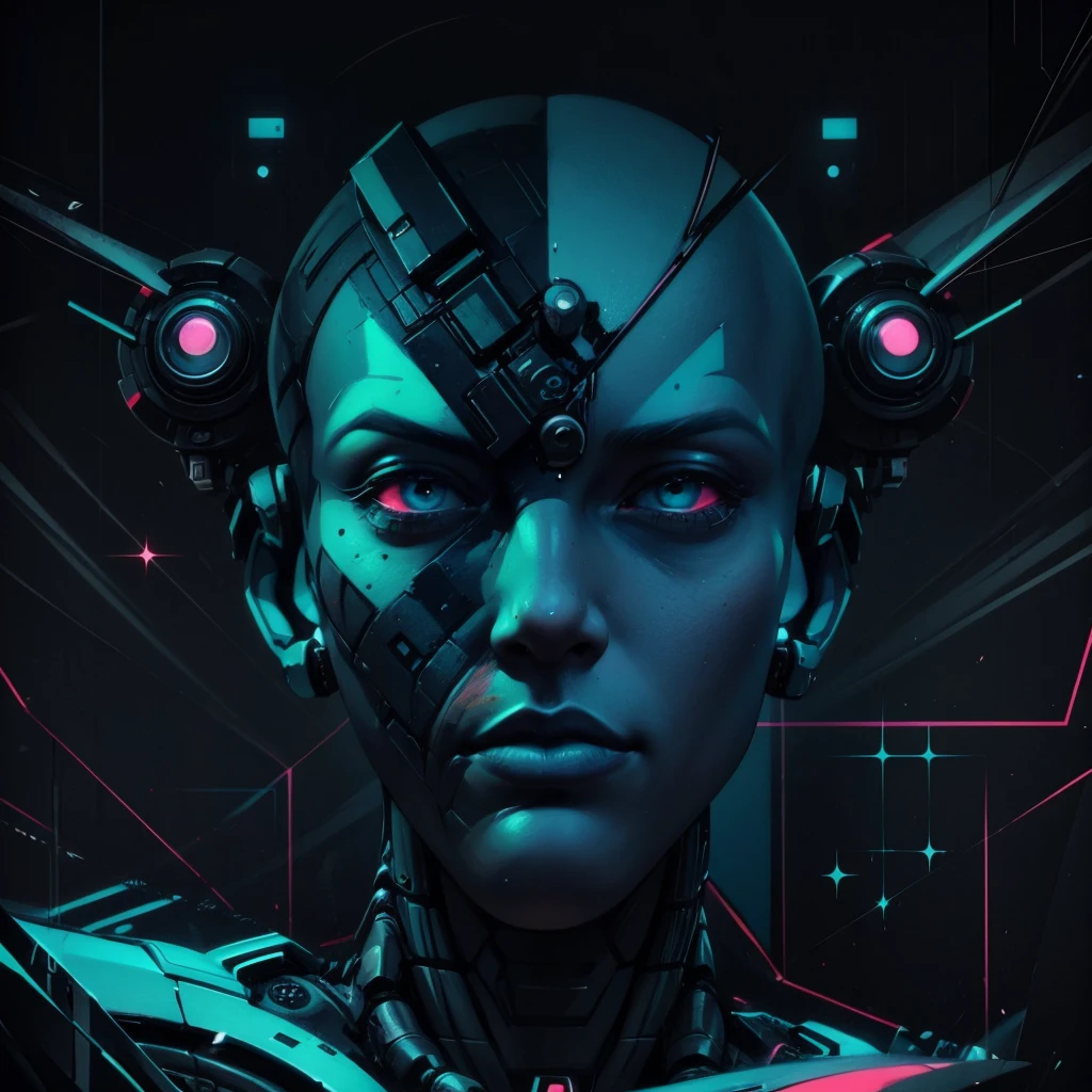 example: <lora:Ztekno_Style:1>, ZteknoStyle, close up of a painting of a man's face, digital art, inspired by Adam Marczyński, digital art, robot punk futuriste geometrie, red and cyan