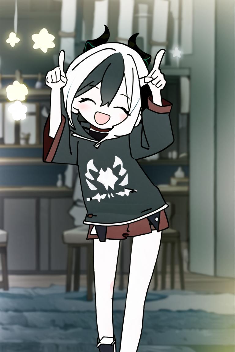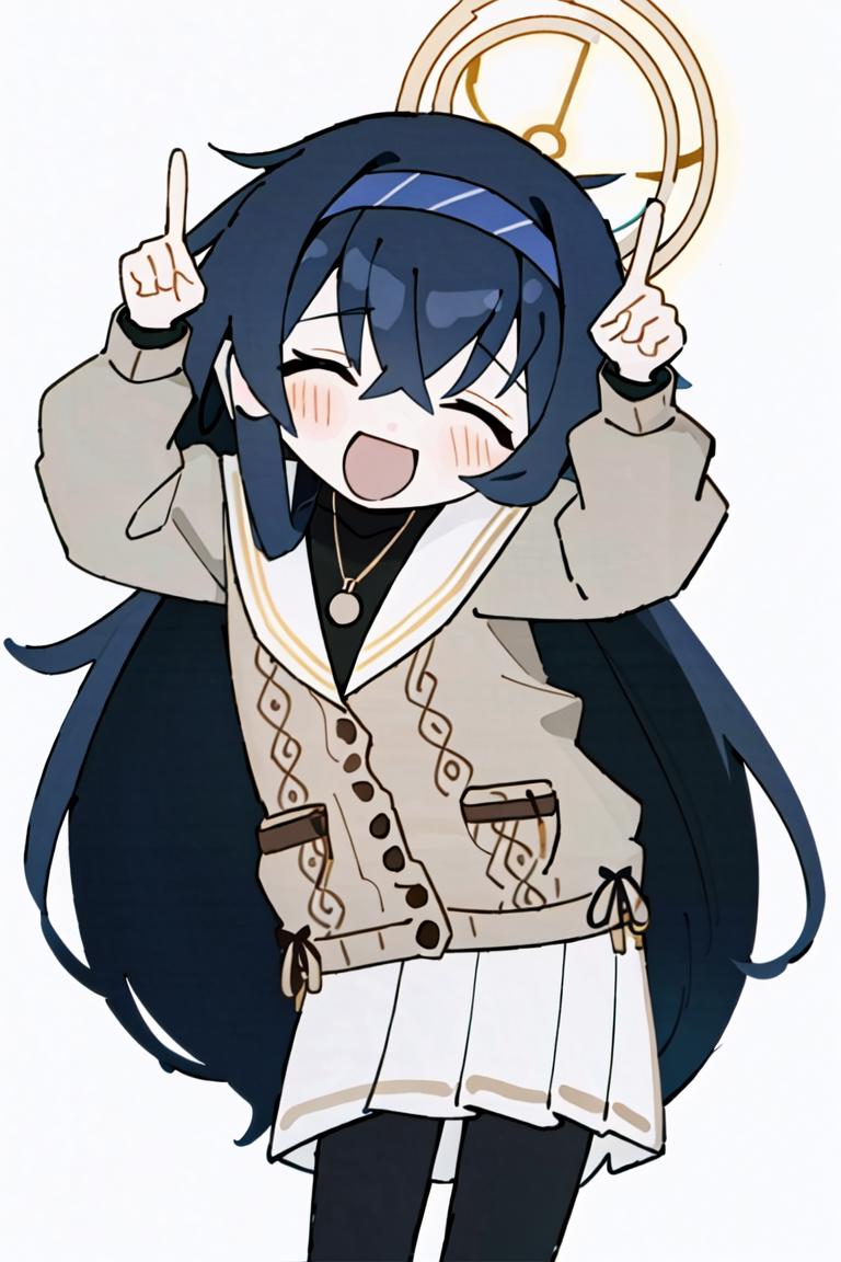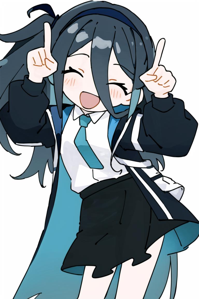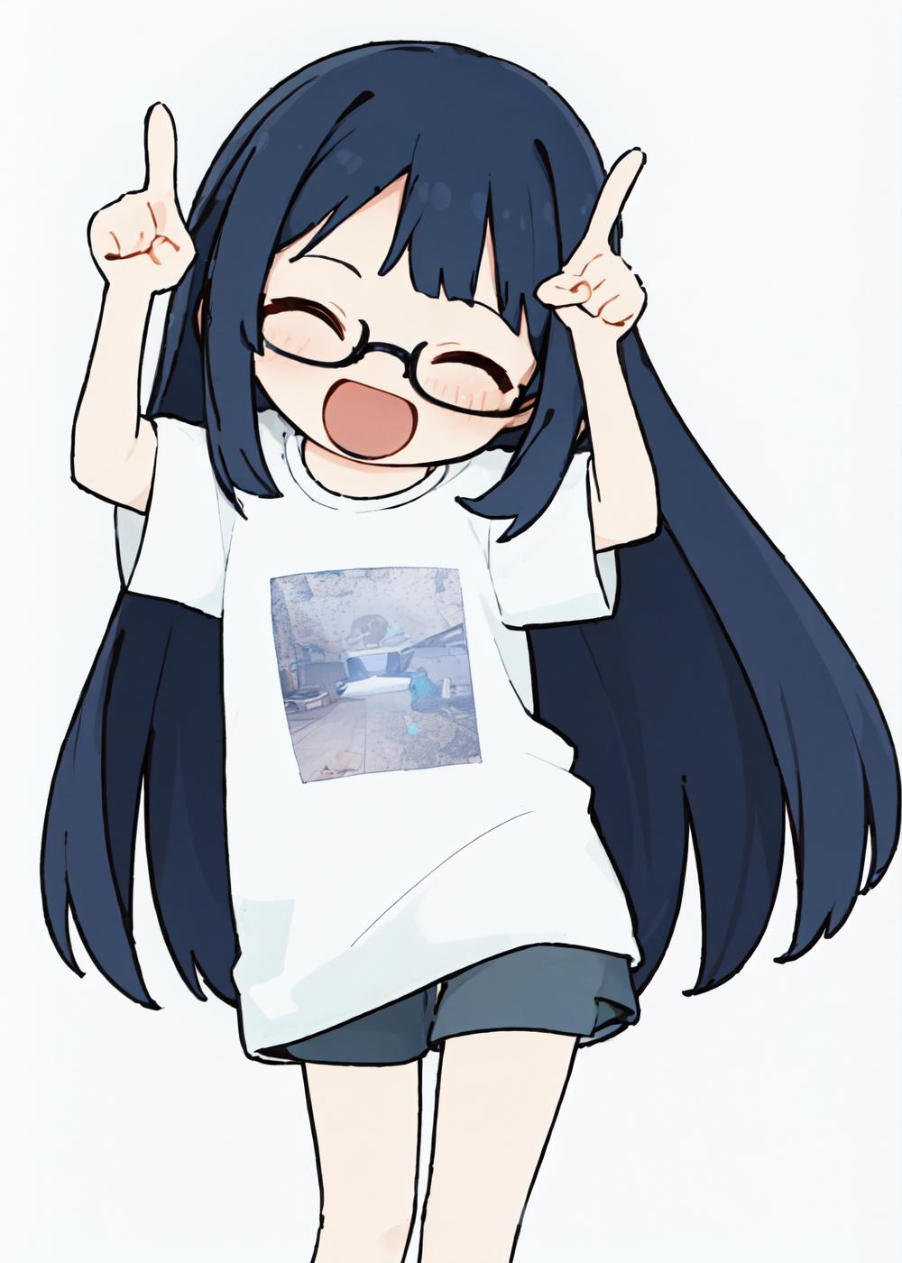 recommended prompt(UP): internet yamero, smile, open mouth, finger raised, ^ ^, closed eyes, simple background,