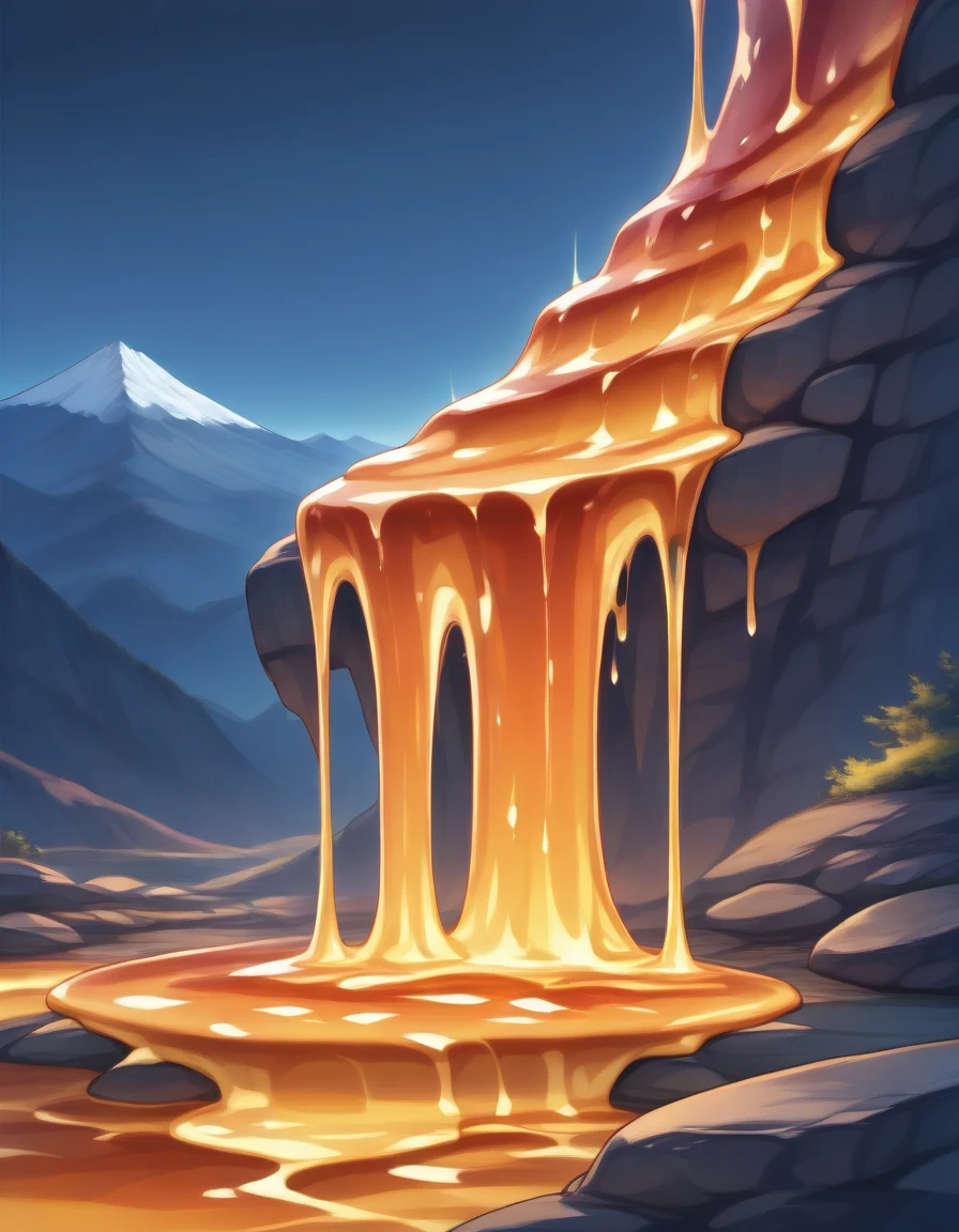 sticky on table, colorful sticky, sticky trailing, string, dripping,