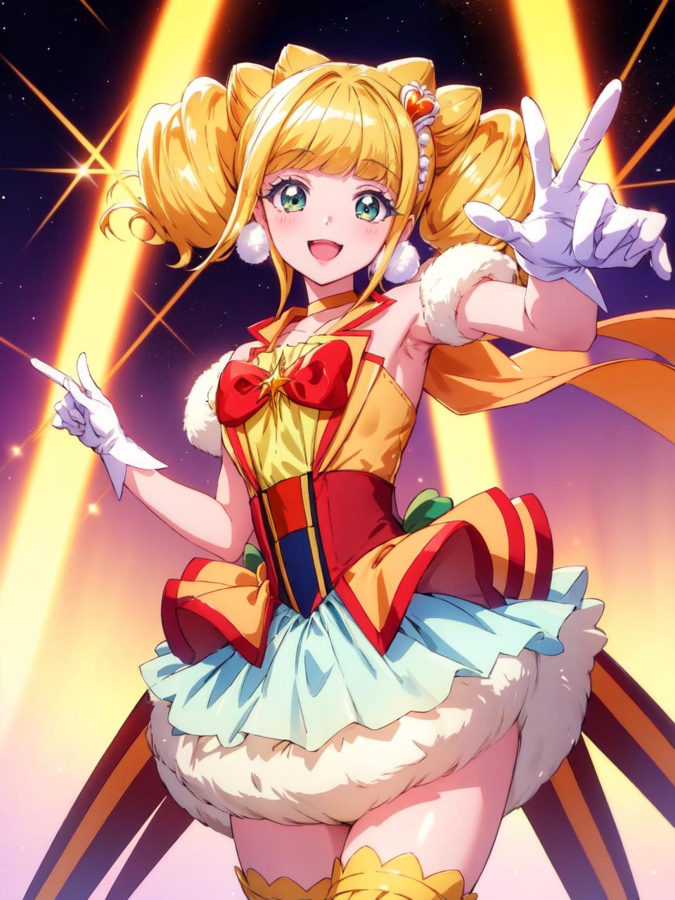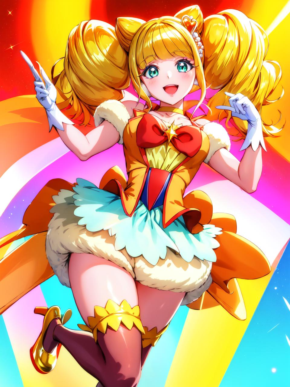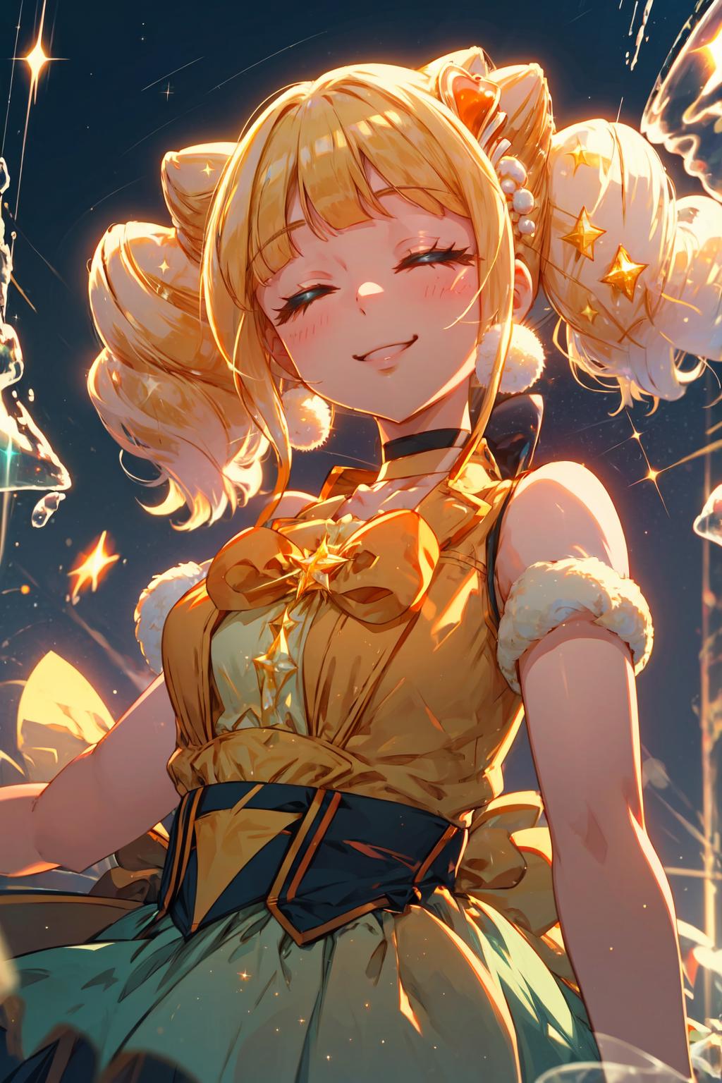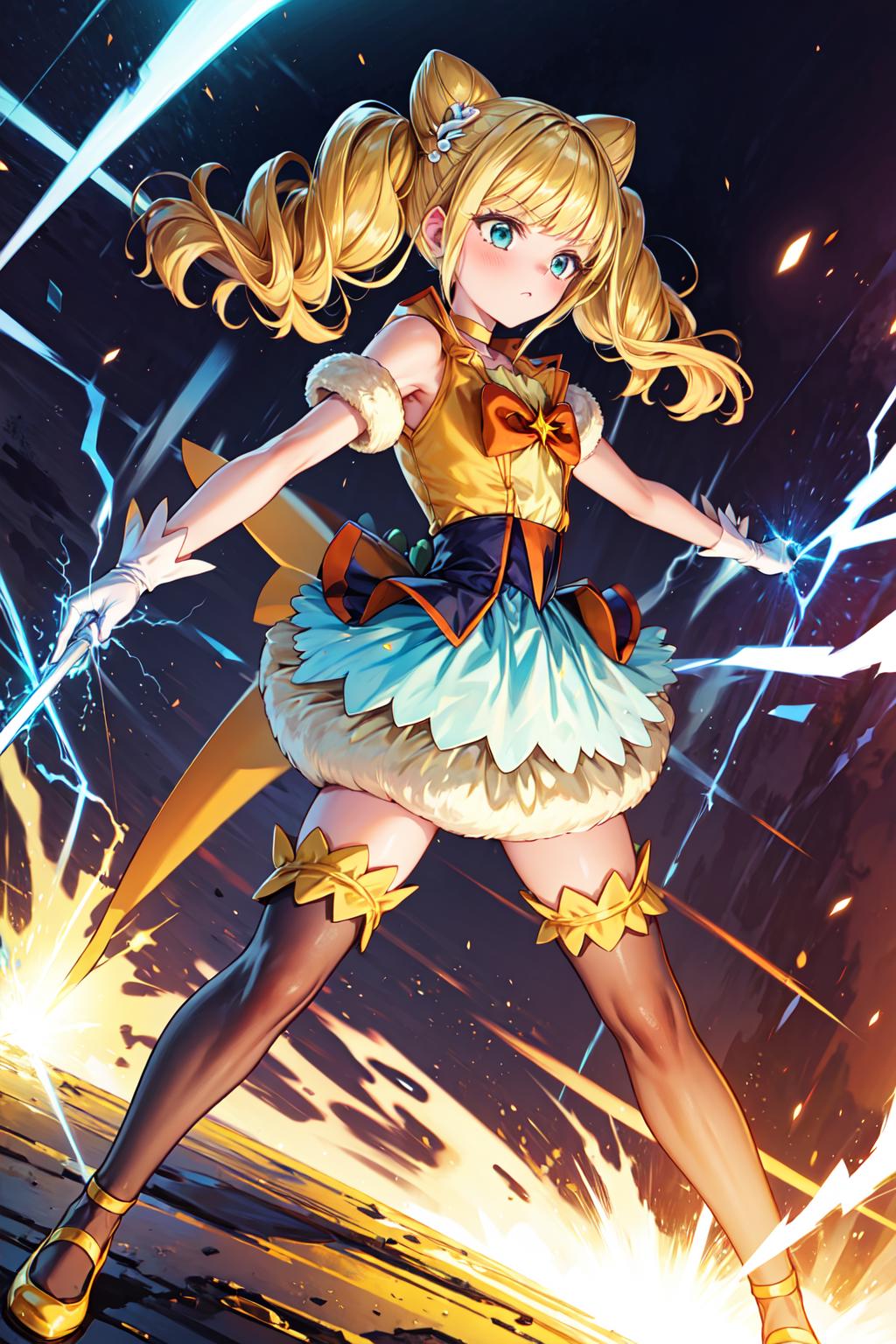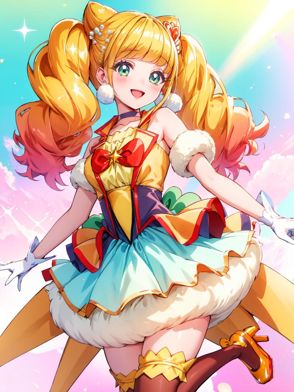 twintails, double bun, hair ornament, vest, ribbon, bubble skirt, high-waist skirt, white gloves, thighhighs, choker, petticoat, high heels
