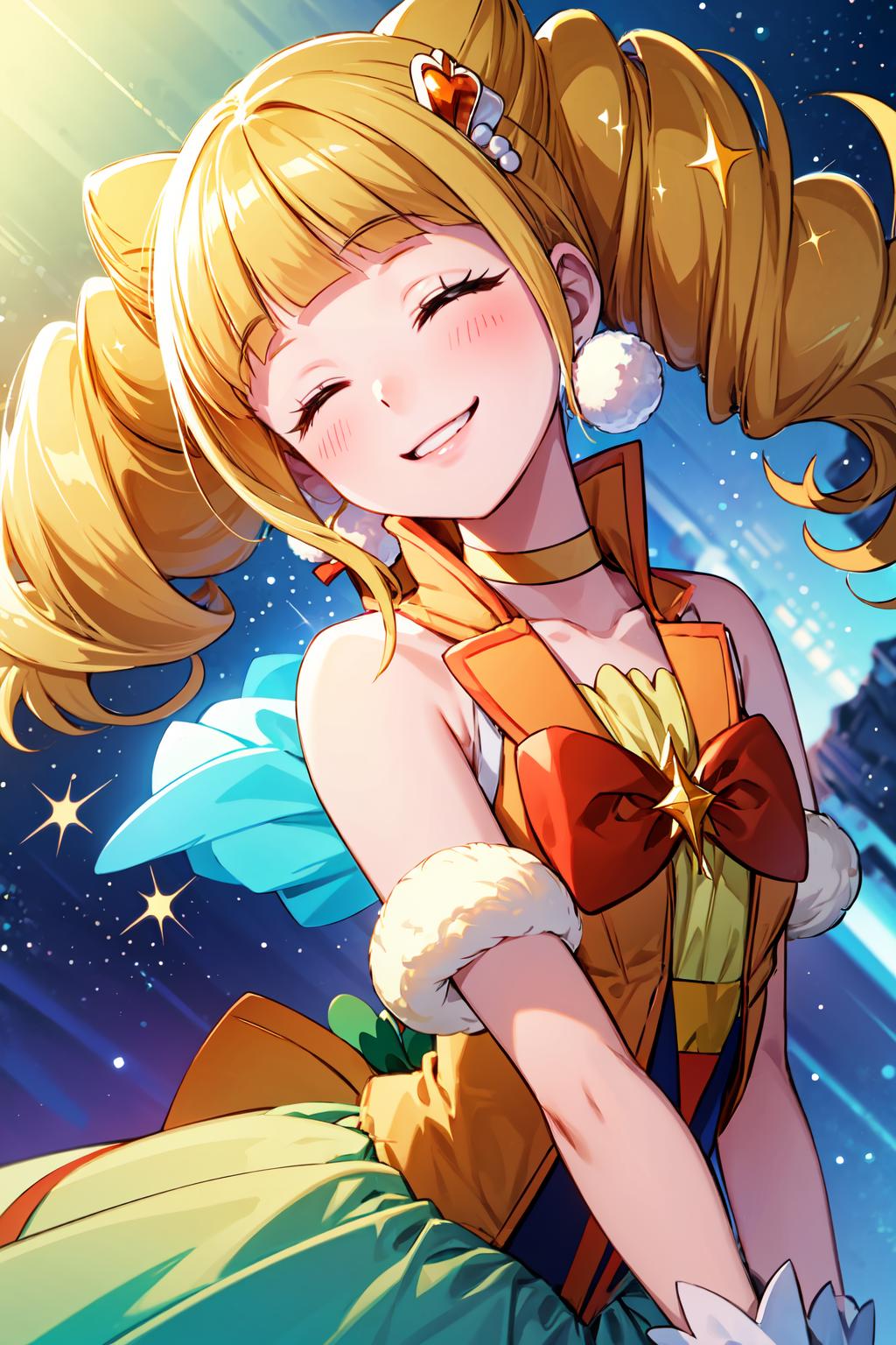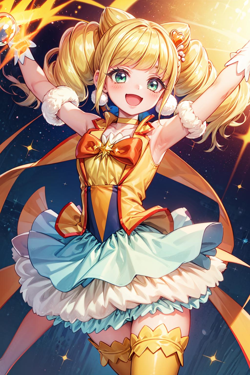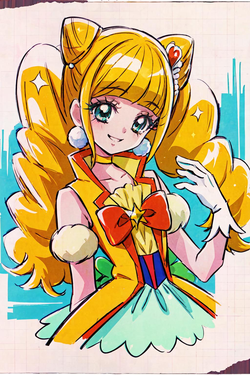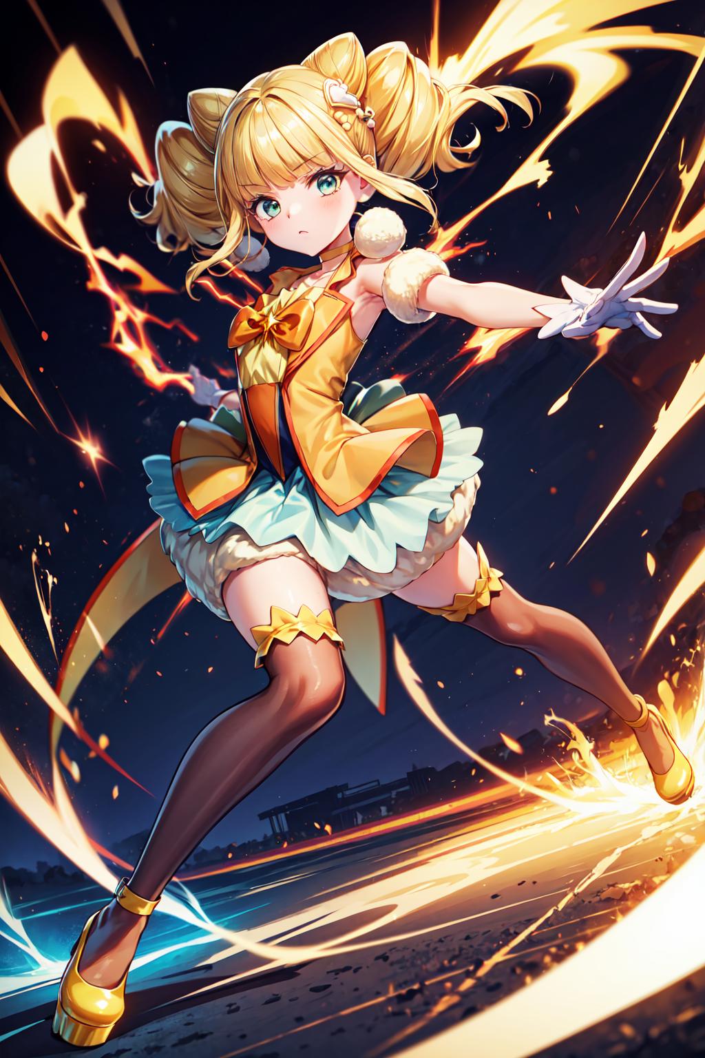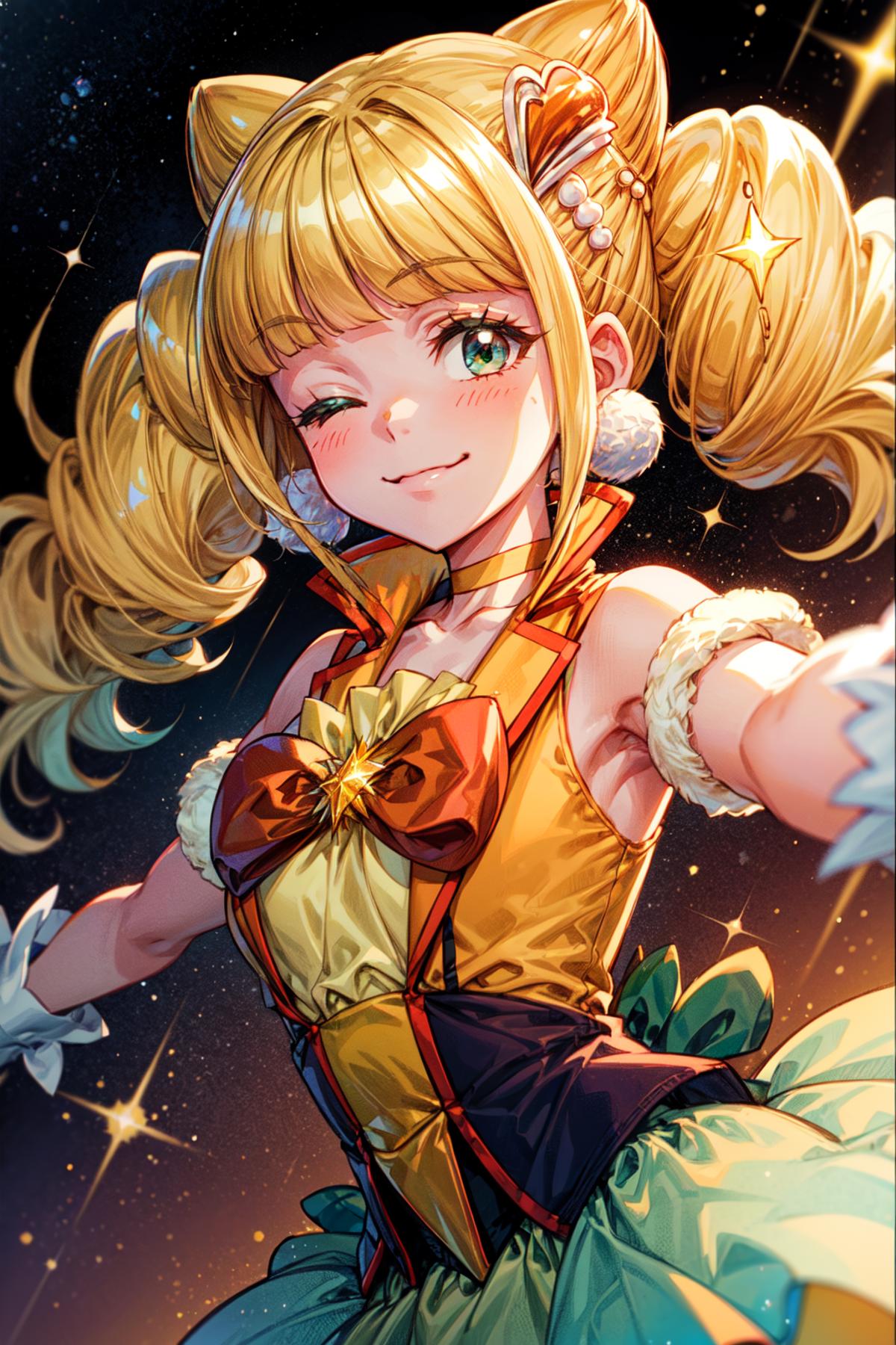 twintails, double bun, hair ornament, vest, ribbon, bubble skirt, high-waist skirt, white gloves, thighhighs, choker, petticoat, high heels