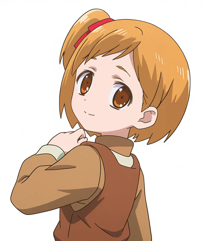 (lachish nyx seniorious,short hair,brown hair,side ponytail,one side up,brown eyes,hair ribbon),