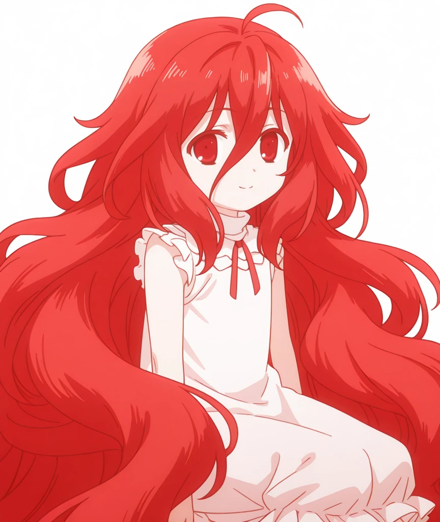 (elq hrqstn,very long hair,red hair,ahoge,hair between eyes,red eyes),