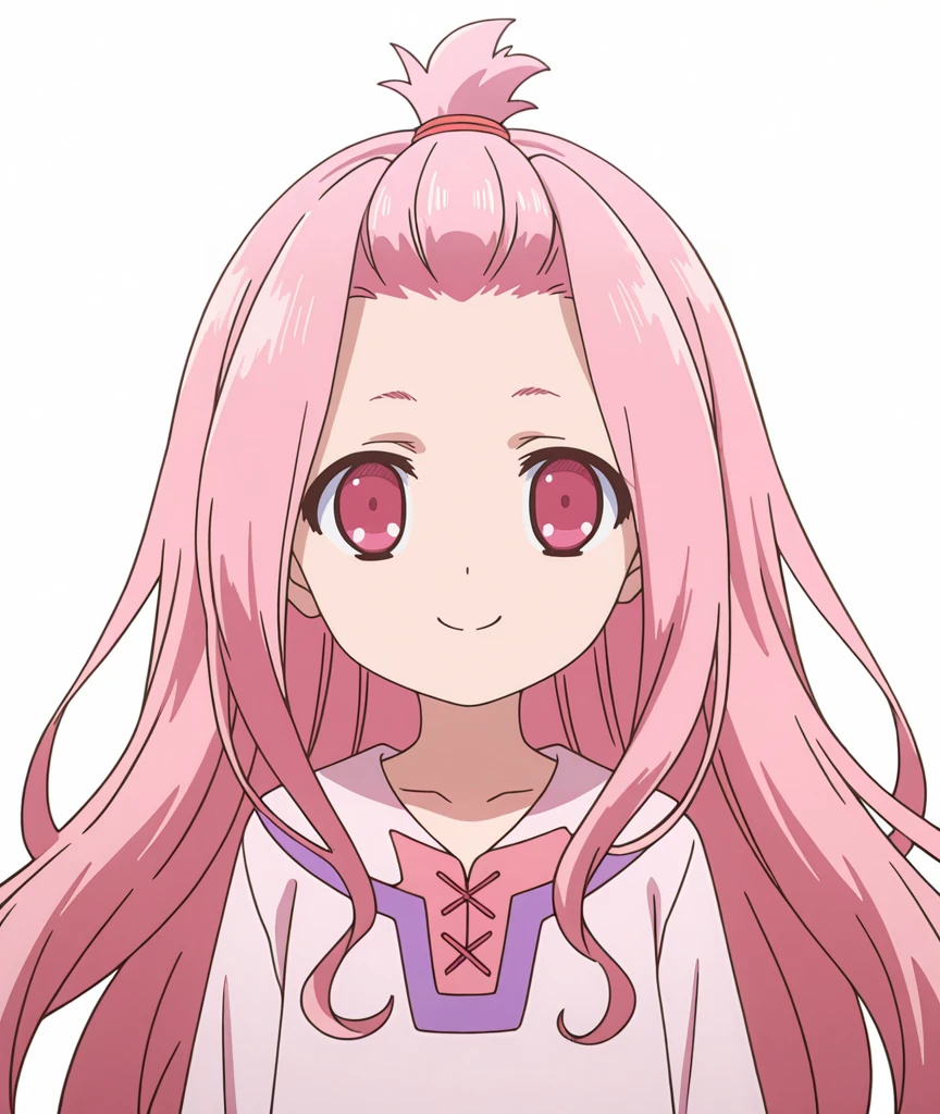 (collon rin purgatrio,long hair,pink hair,bangs pinned back,forehead,pink eyes),