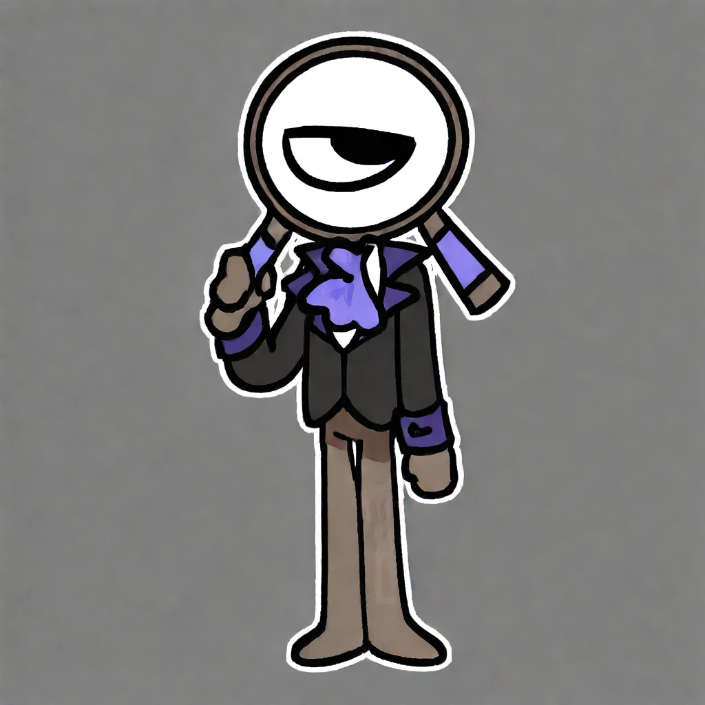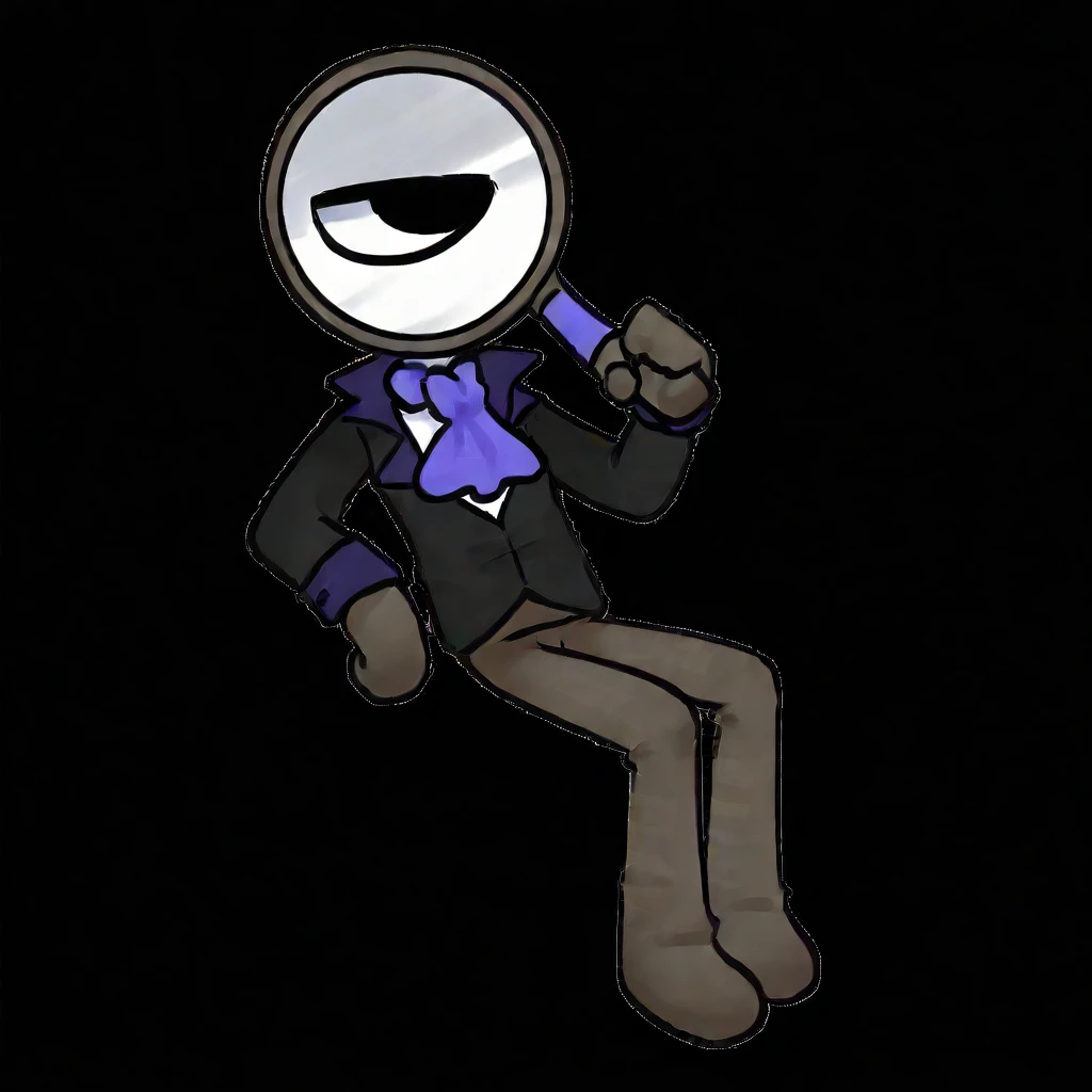 anthro, magnifying glass head, one eye, brown body, cartoony