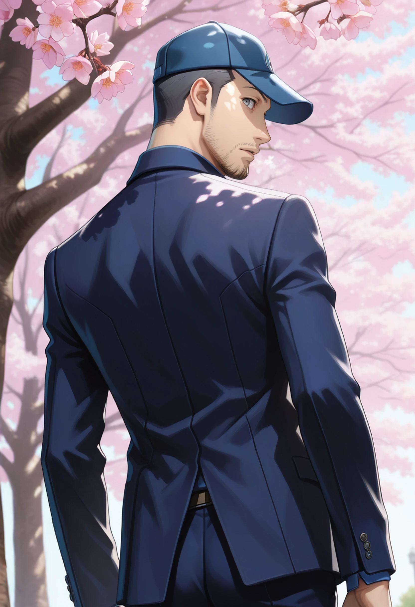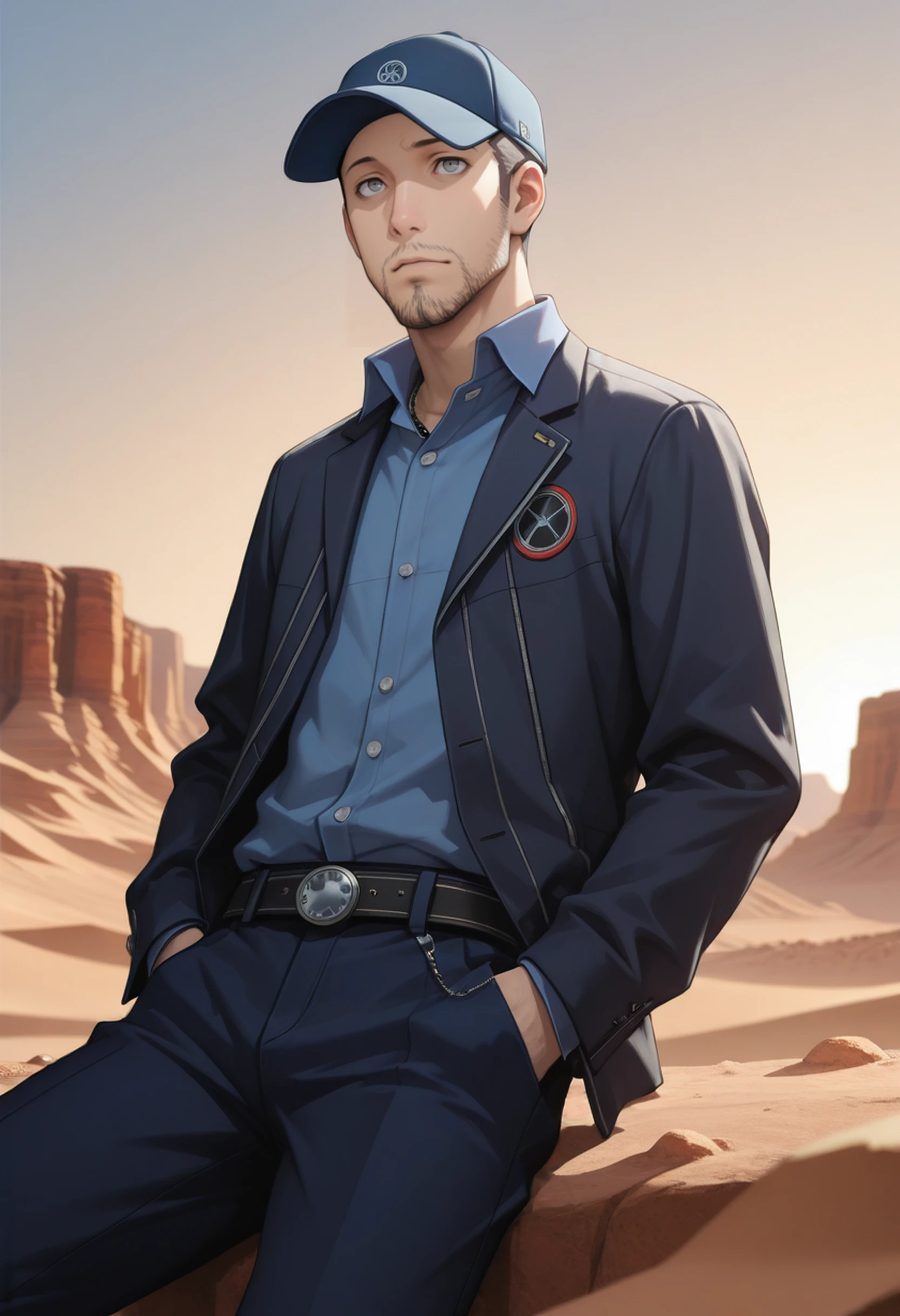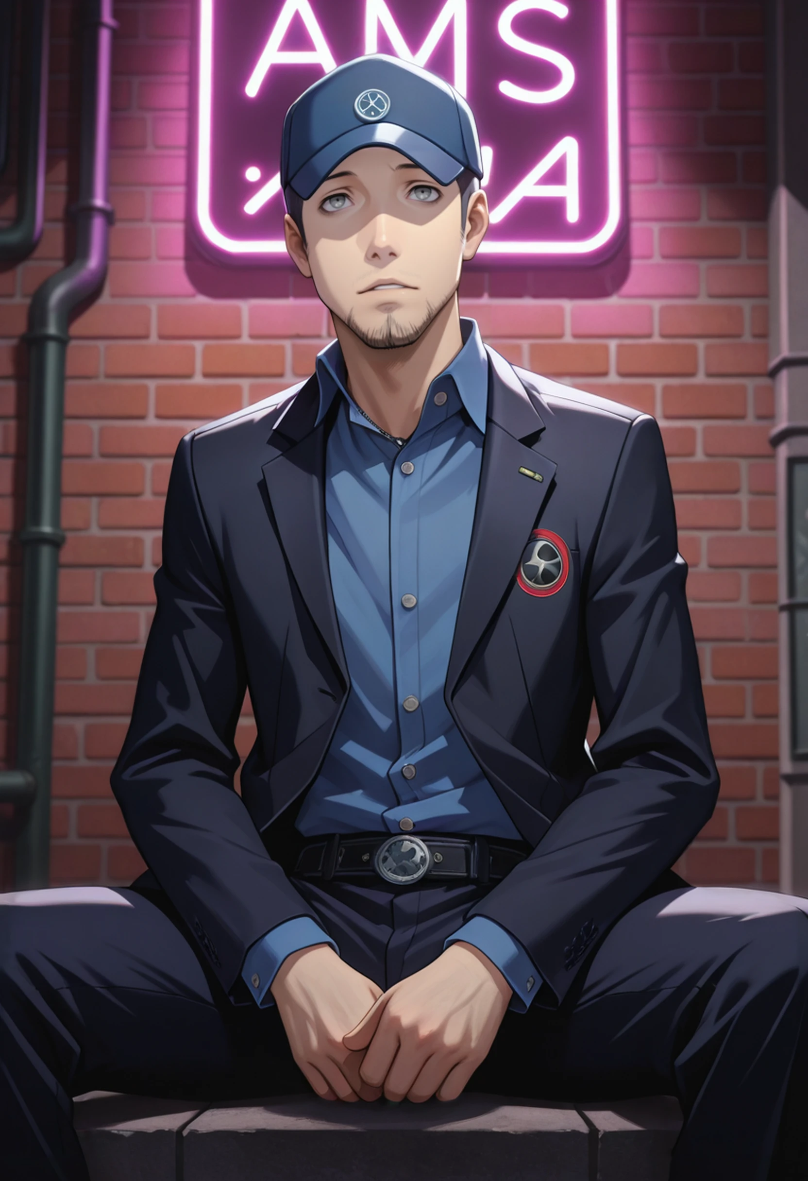 P3Junpei, 1boy, short hair, gray eyes, baseball cap, facial hair