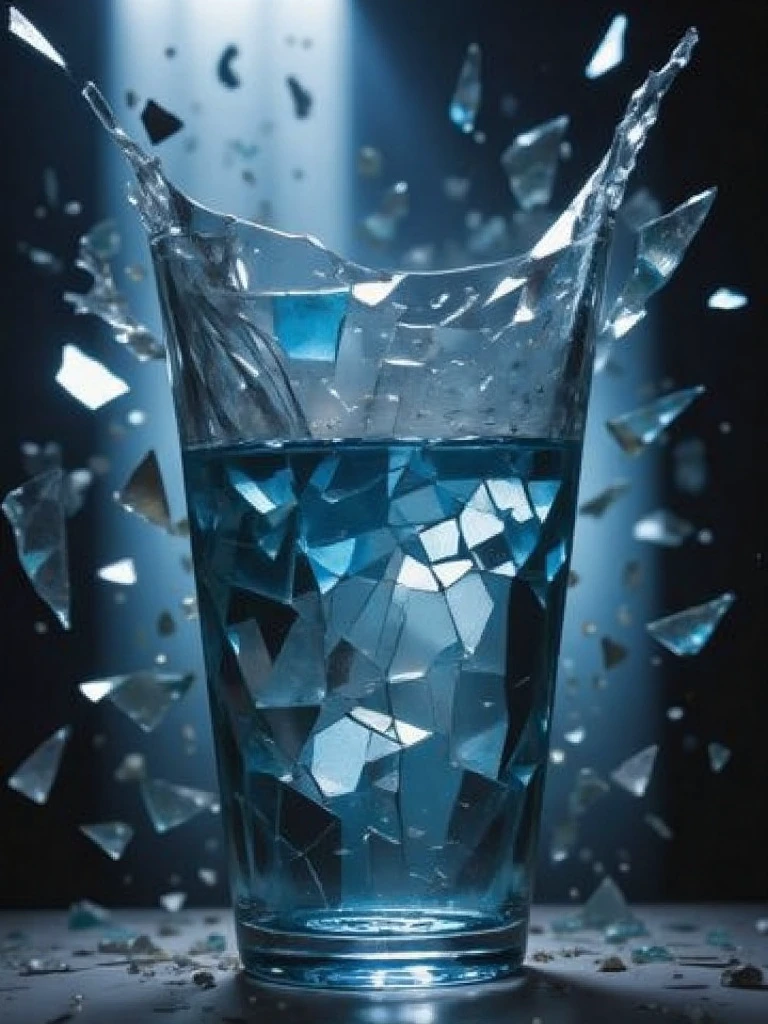 -Recommendation: Broken glass, a glass vase is adorned with a variety of vibrant colors, including pink, yellow, orange, and blue. The vase casts a The vase casts a shadow on the surface beneath it