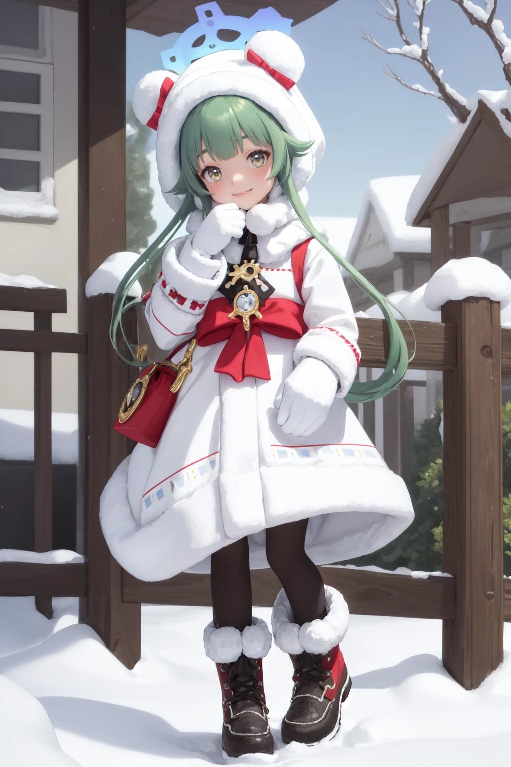 default outfit : hood, fur trim, animal hood, winter clothes, white coat, gloves, fur-trimmed hood, fur-trimmed coat, pantyhose, fur-trimmed- sleeves, fur-trimmed capelet, fur-trimmed boots,