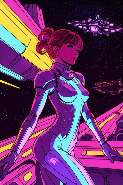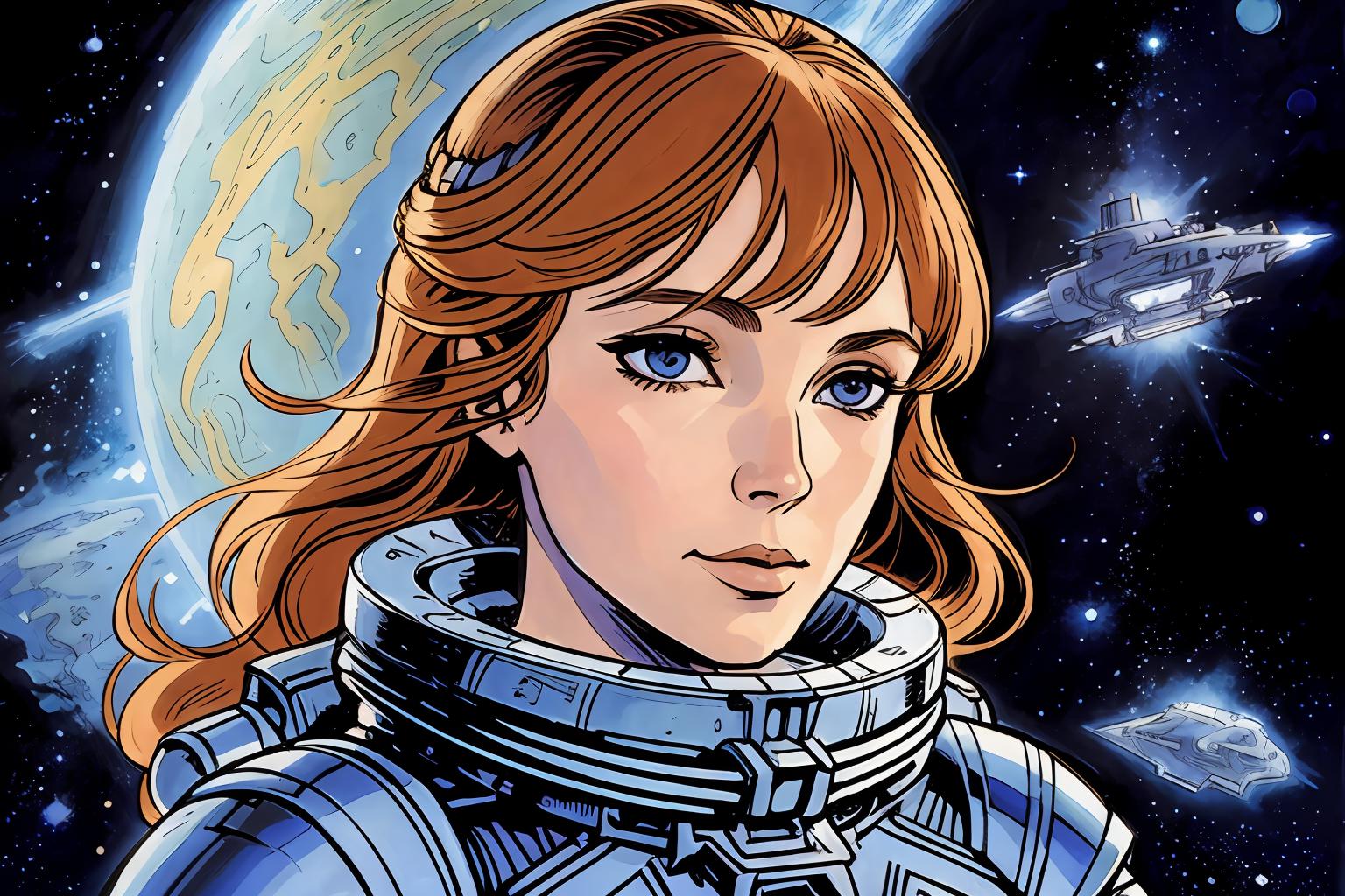 It is trained from earlier images of Valerian & Laureline, which is a French science fiction comics series, created by writer Pierre Christin and artist Jean-Claude Mézières. It ran from 1967 to 2010. I recently discovered it and fell in love with the story and art style. So, I decided to try and recreate it. At the time it was first published, sci fi was not as mainstream of a concept as it is now. You will often find that many popular sci fi literature/movies have influence from the comic and setting. Somewhat of a grandfather to sci fi. This is my first attempt at recreating this style.