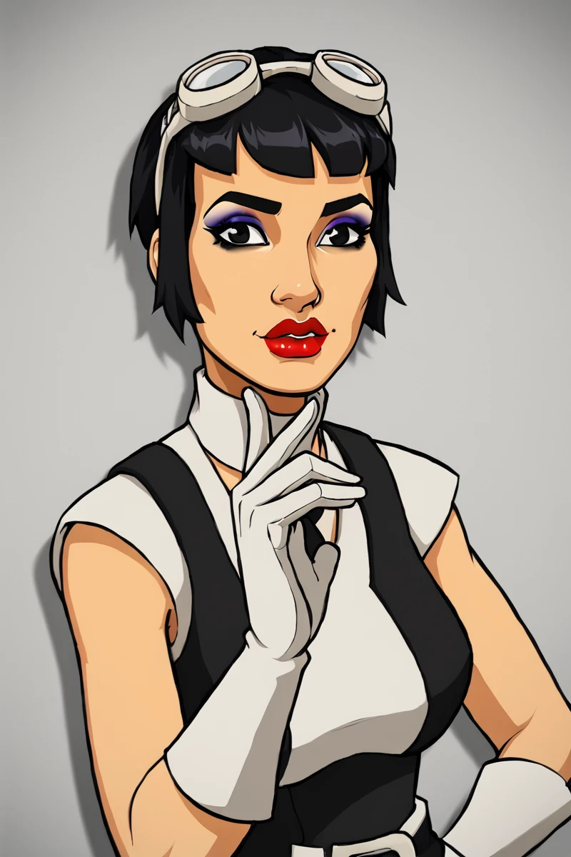 Symmetry from the game Evil Genius 2.. She is the A.N.V.I.L Super Agent in the game.Not perfect, there was not a lot of source material available for her. Especially the black and white clothes can cause some trouble.