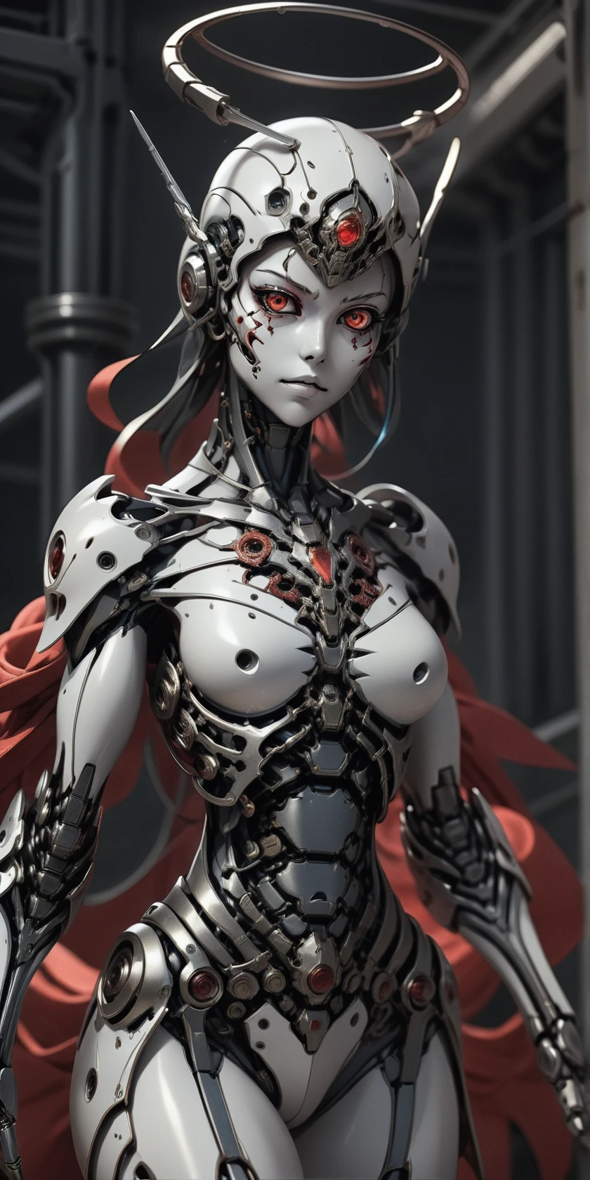 Prompts referring to cyborgs, mechs and angels should do the trick. For good face is good to use additional prompting and face restoration. Sometimes will pop up additional limb, mostly it will be leg plus additional calf.