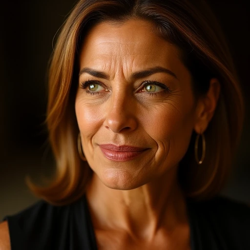 Generate headshots for a fictional late 40s Brazilian woman to be used as a story character.