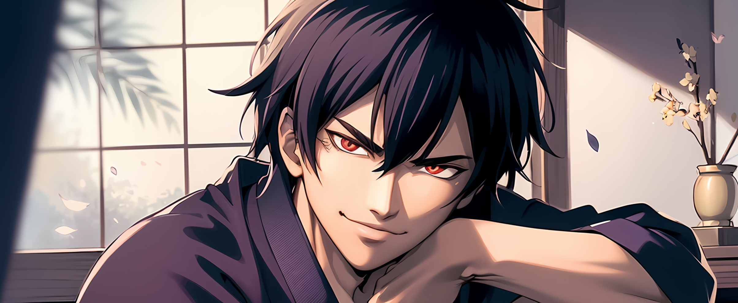 DEMON EYES KYO: Red eyes, Short hair, Black kimono (mostly trained on this one)