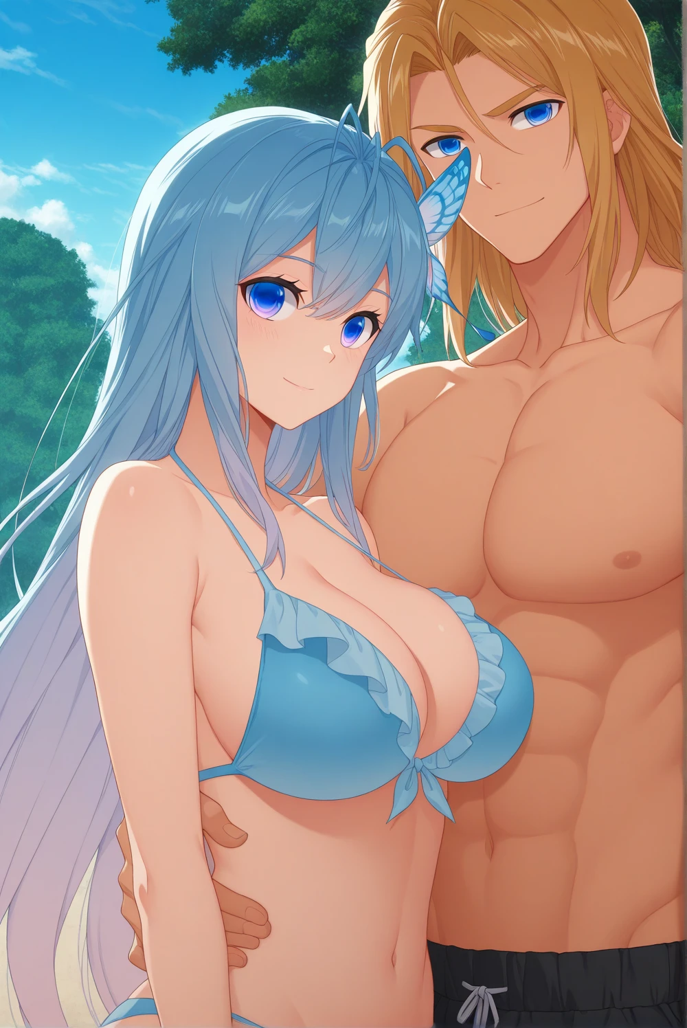 blue hair, multicolored hair