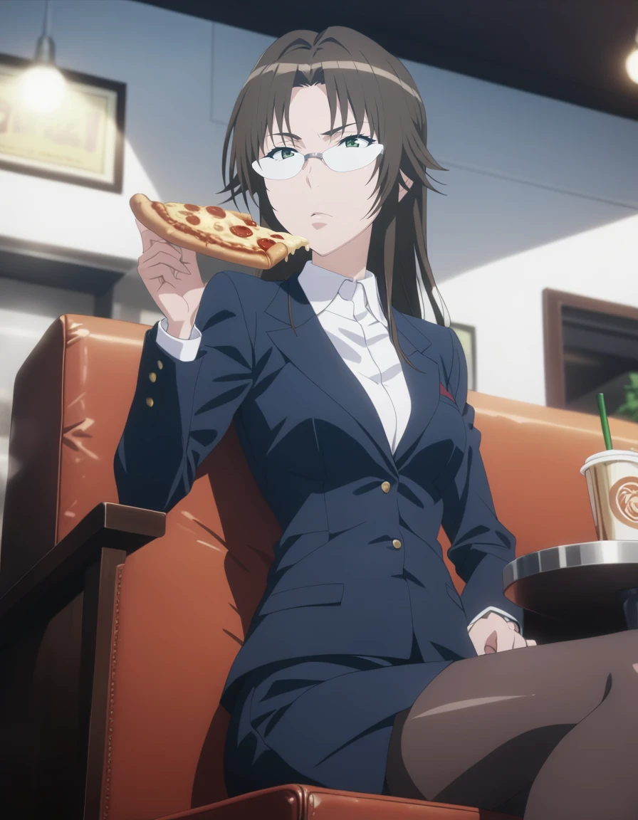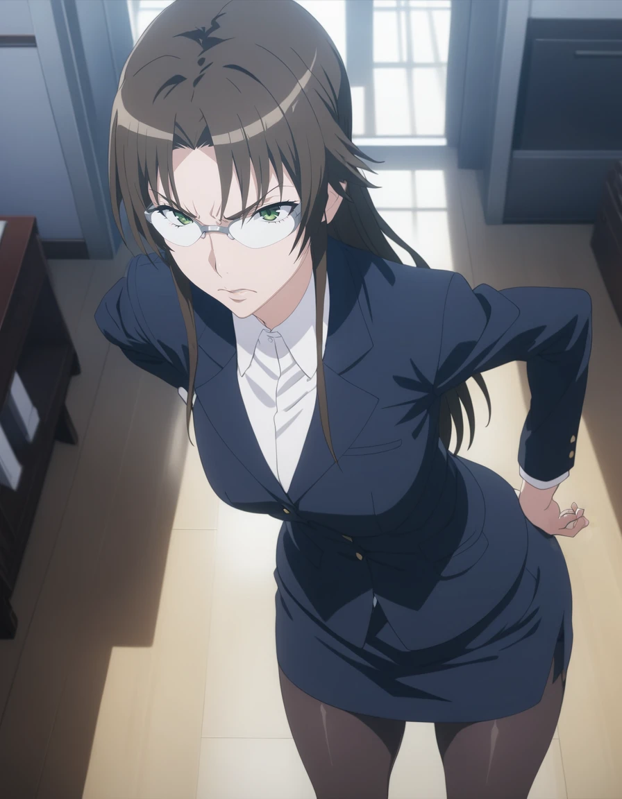 RYOUKAN,BROWN HAIR,LONG HAIR,GREEN EYES,OPAQUE GLASSES