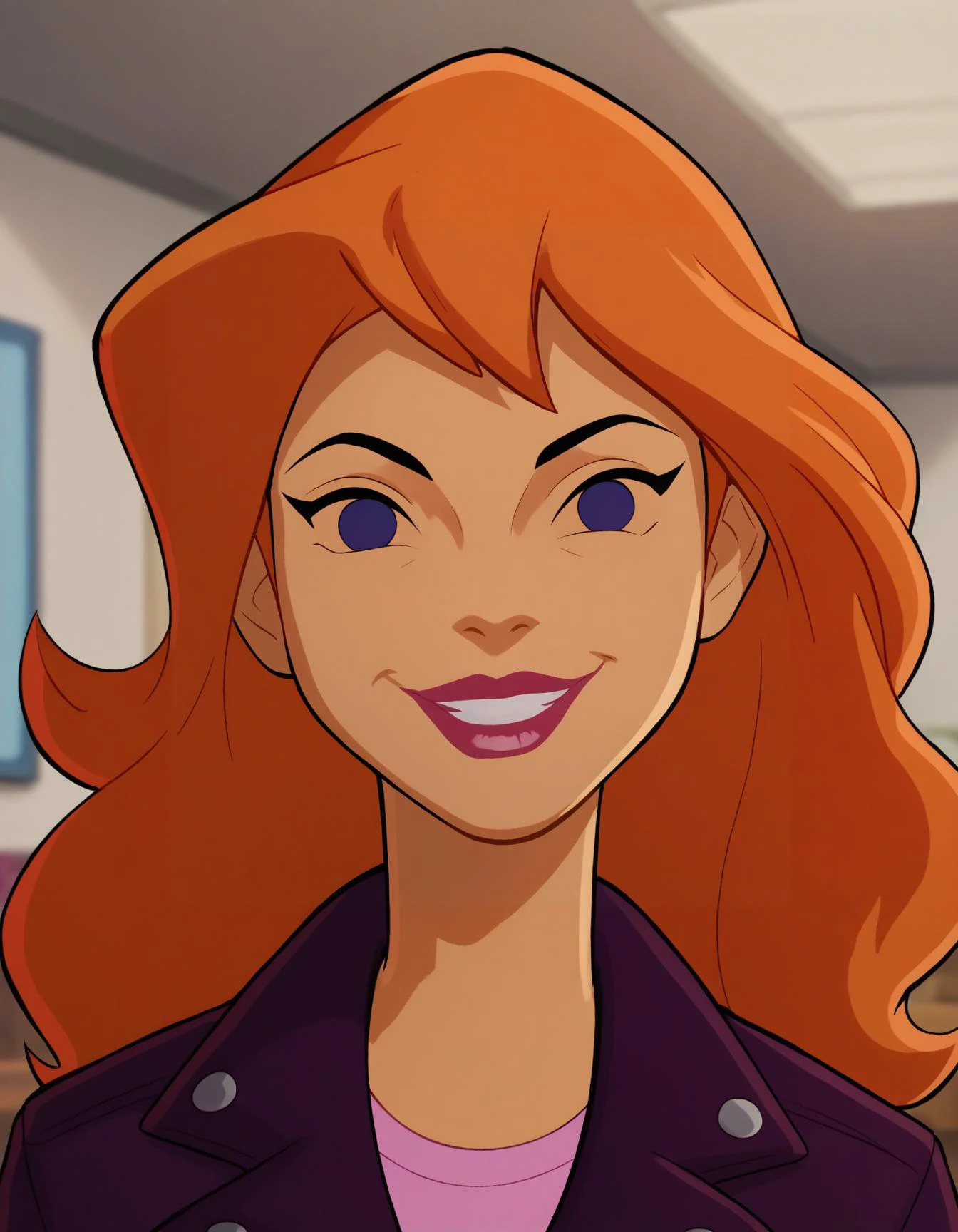 xdaphnex, orange hair, long hair, purple eyes, lipstick