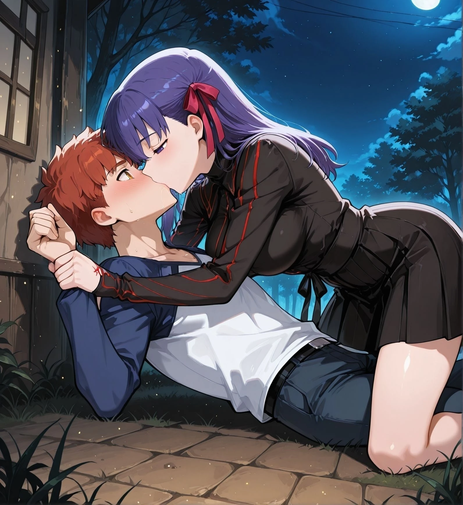1girl,1boy,fdom held, holding another's wrists,kiss,