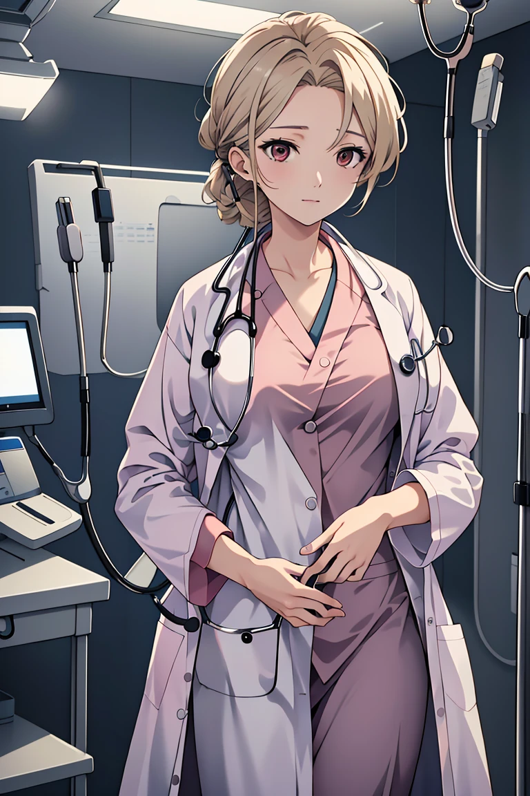 sayuri brooks, 1girl, solo, anime coloring,blonde hair, red eyes,