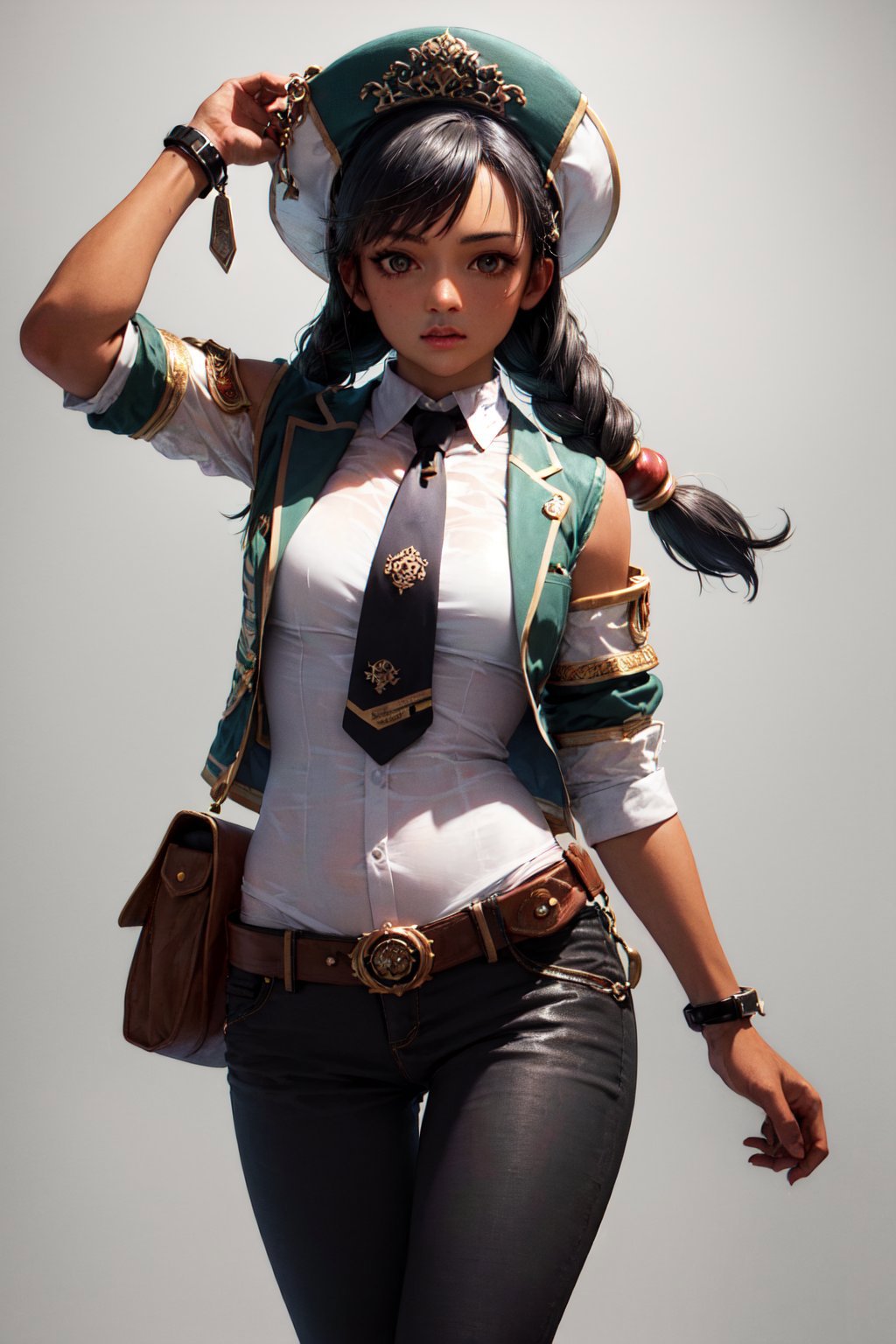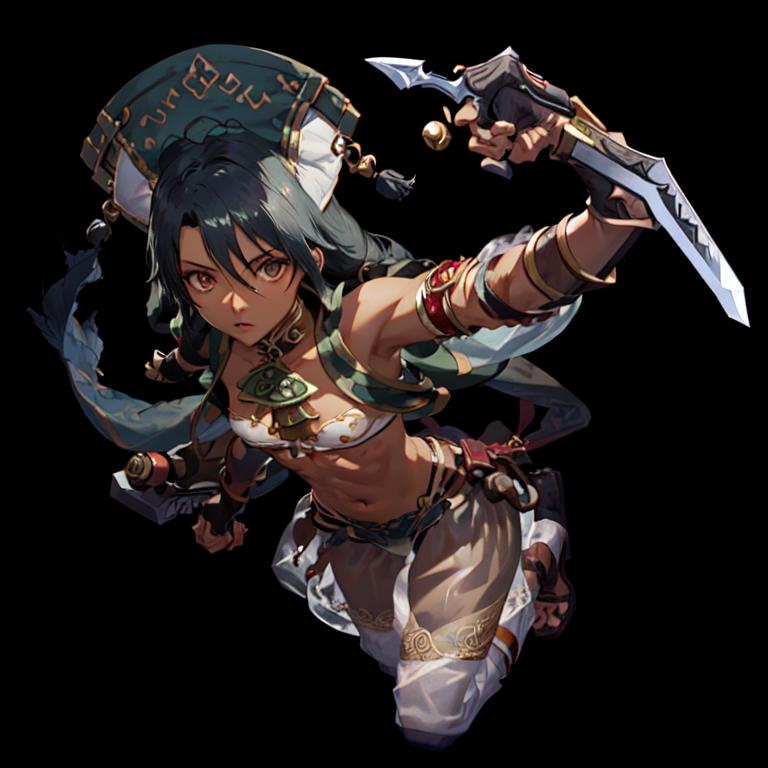 Trigger + Appearance: talim, dark skin, dark-skinned female, twintails, braid