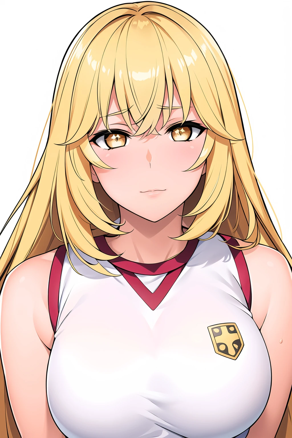 sparkling eyes, yellow eyes, blonde hair, bangs,Long hair,symbol-shaped pupils,