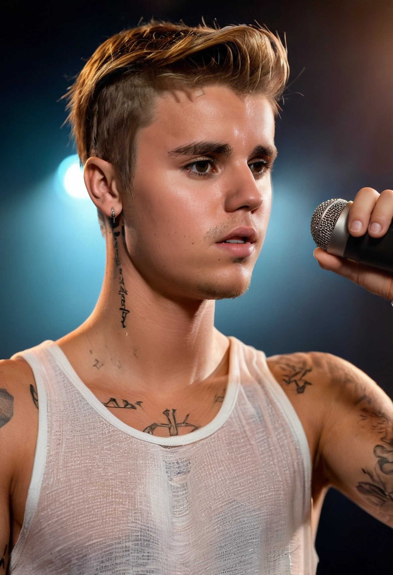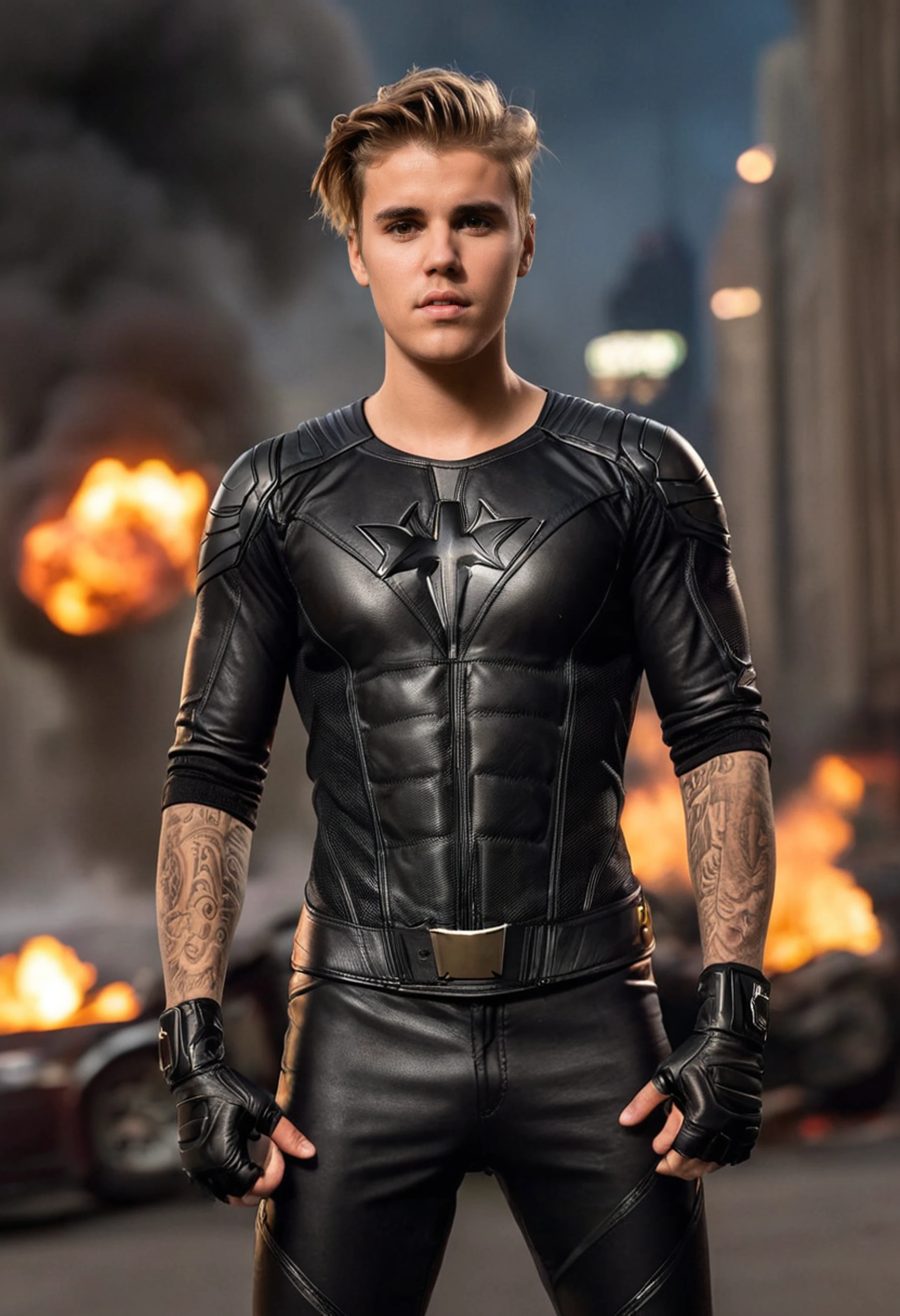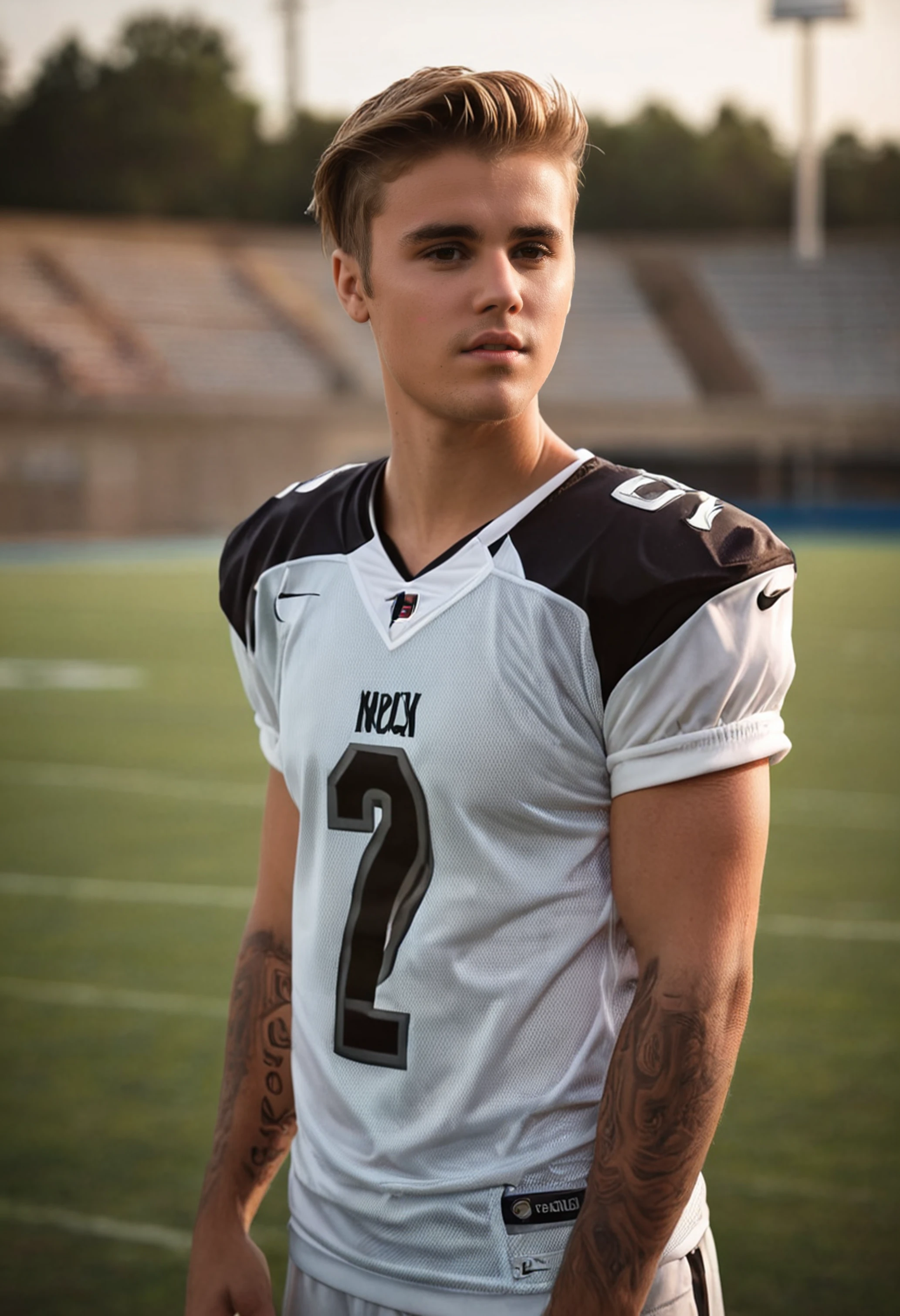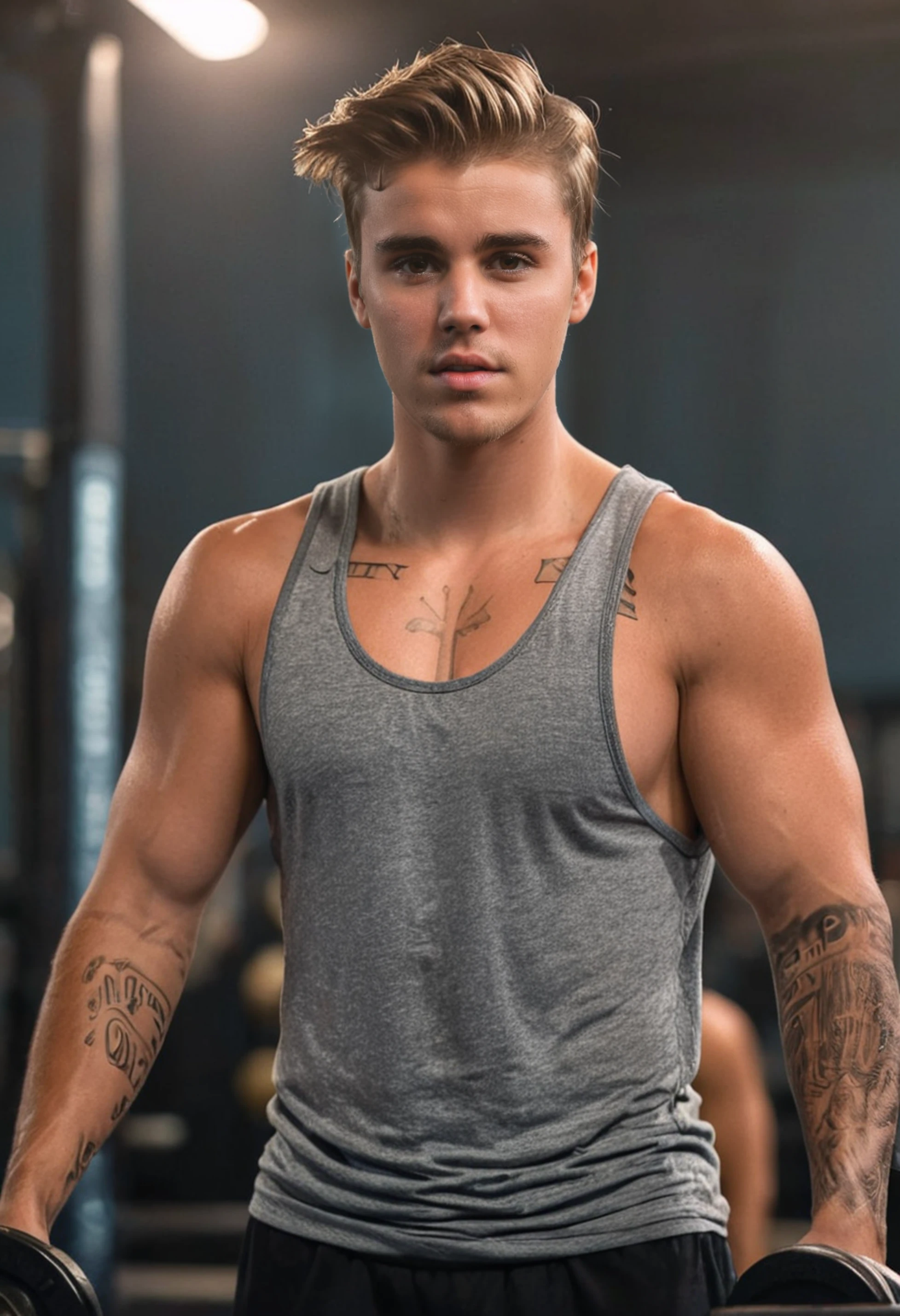 The Lora defaults images to blond hair, so prompt accordingly. I also recommend including "tattoos" in the prompt. They don't completely cover the chest, as he has them recently, but they do have both arm sleeves.