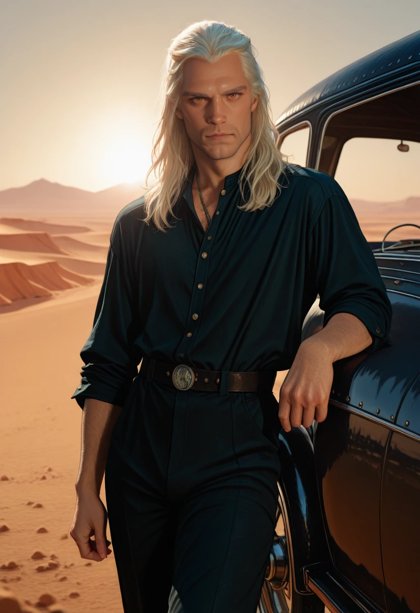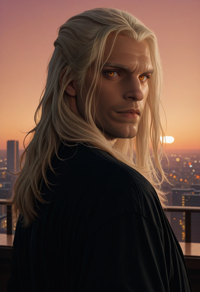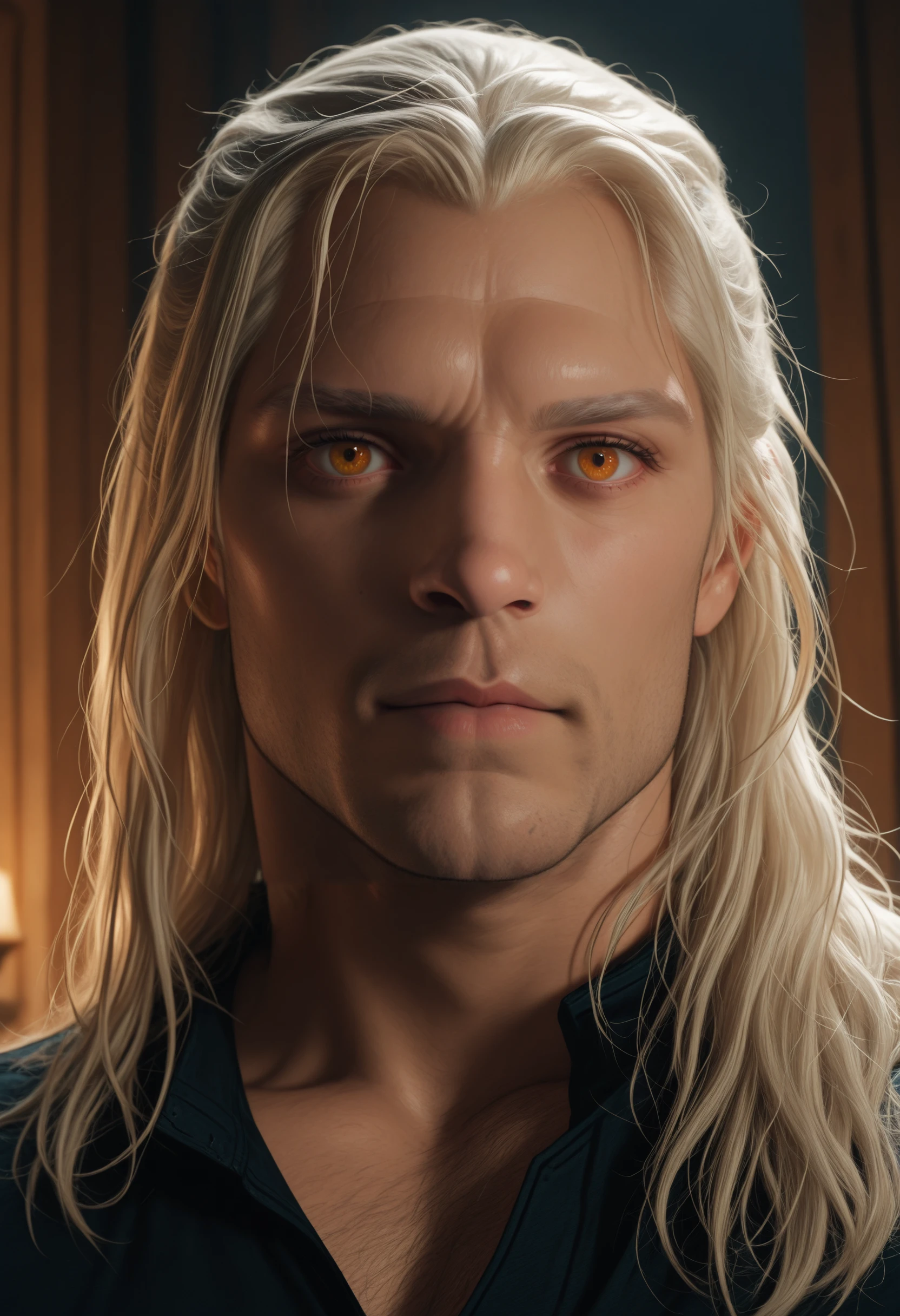TWTVGeralt, 1boy, male focus, amber eyes, long hair, white hair