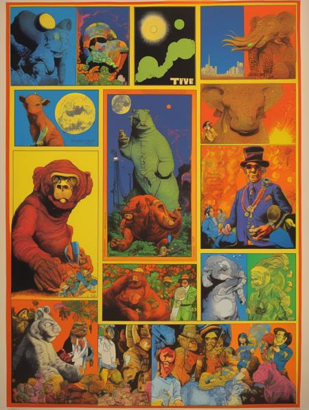 In addition to his poster art, Moscoso also ventured into other artistic mediums, including painting and comic book illustration. His paintings often carried the same psychedelic aesthetic, with swirling forms and vibrant colors.