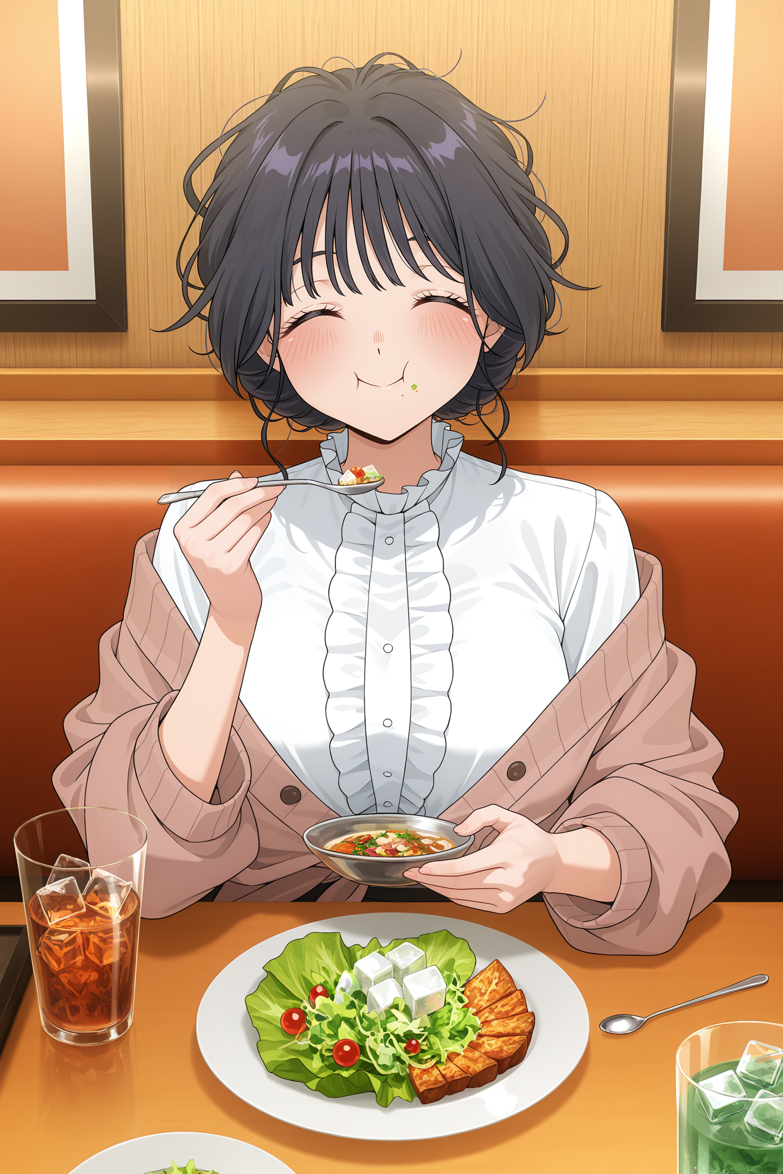 这次的角色是《薰香花朵凛然绽放》的女主角-和栗薰子。此lora仅用触发词就可以还原人物外观特征,但是可能会被和色彩相关的tag影响,所以可以考虑添加以下tag来保证人物的还原度: